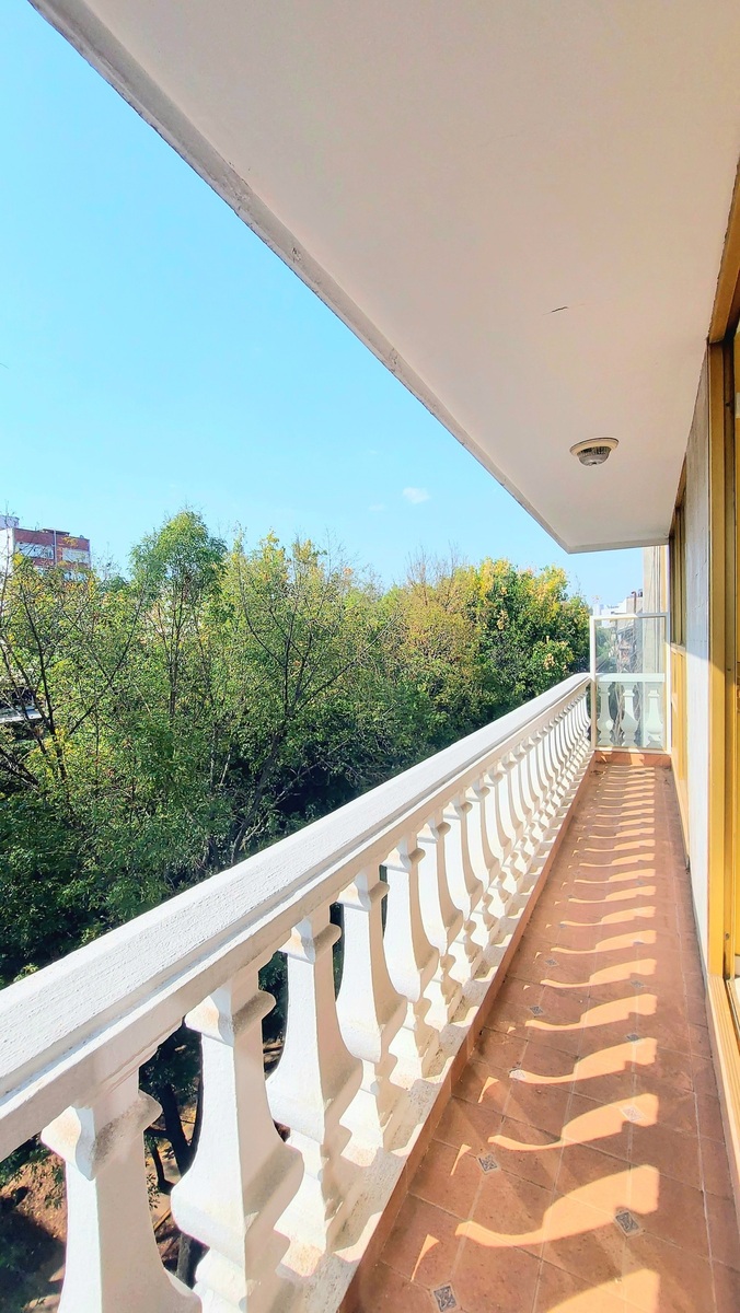 Sala - comedor con balcón, vista arbolada sin cables, total privacidad e iluminación