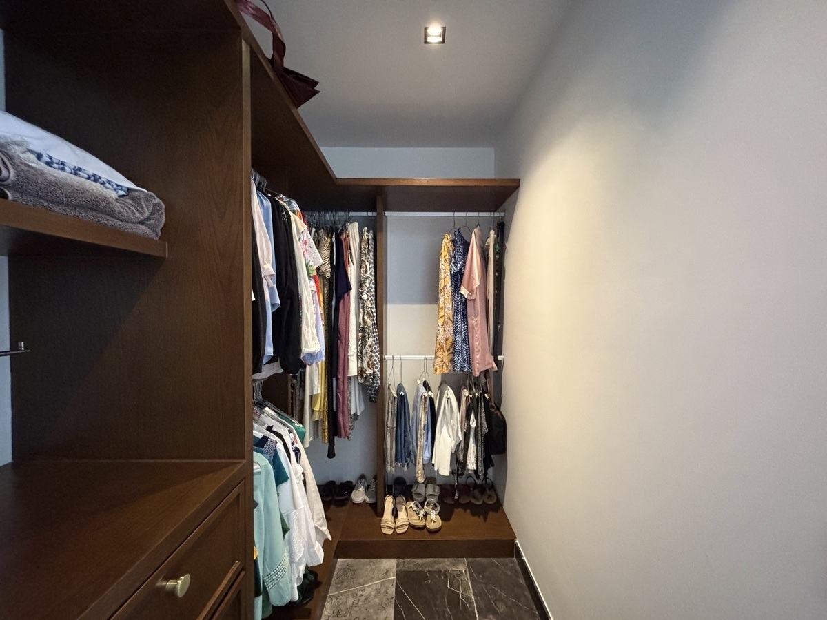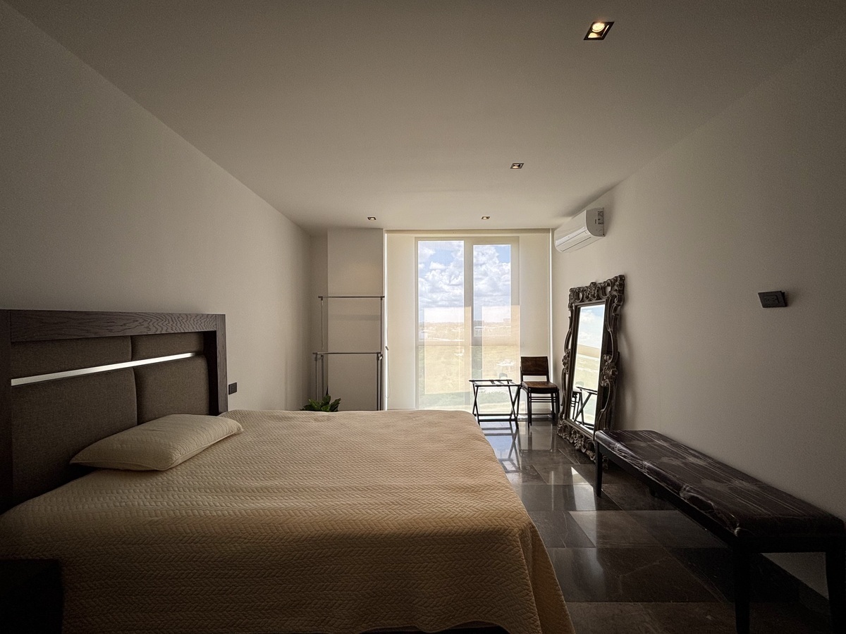 Recámara principal con cama King Size, clóset vestidor equipado y baño completo.