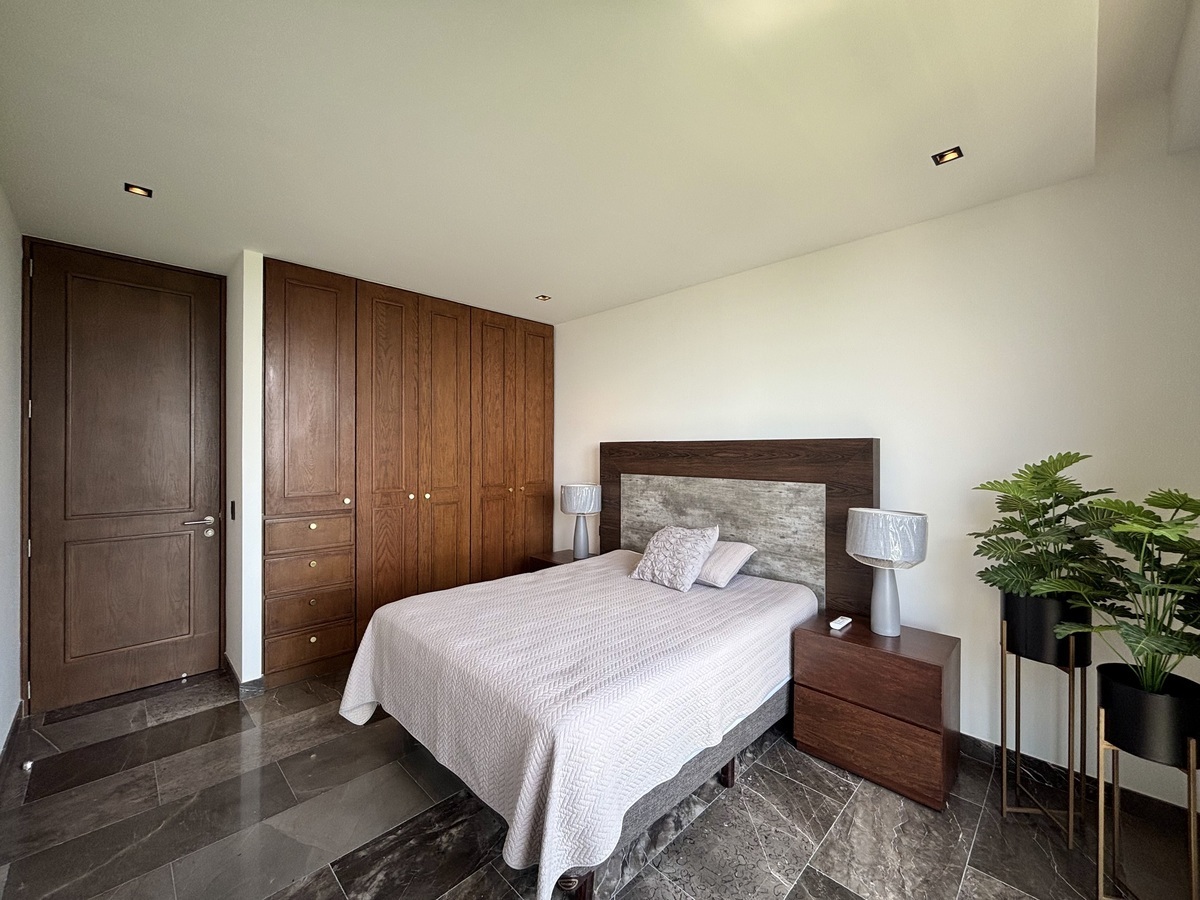 Recámara secundaria 1 con cama Queen Size con clóset de pared equipado y baño completo.