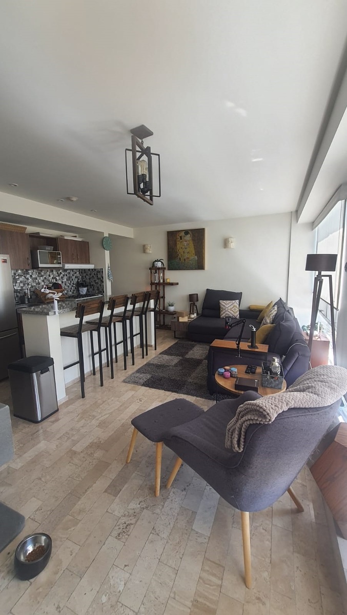 Sala, comedor y cocina integrados en un ambiente luminoso