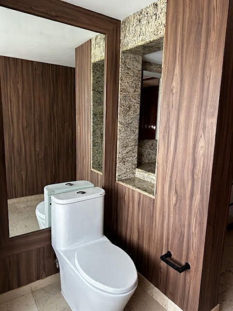 Los acabados de lujo madera natural y mármol, cuenta con persianas.