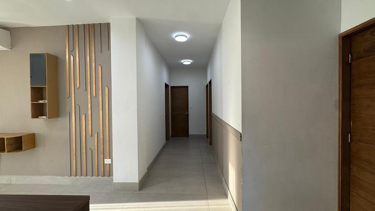 El departamento cuenta con tres recámaras en una área de 131 metros .2 baños completos,4 climas ,2 lugares techados de estacionamiento