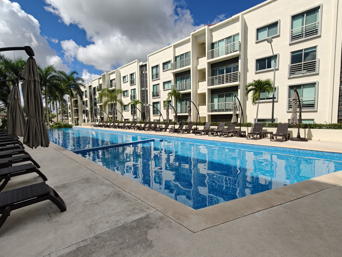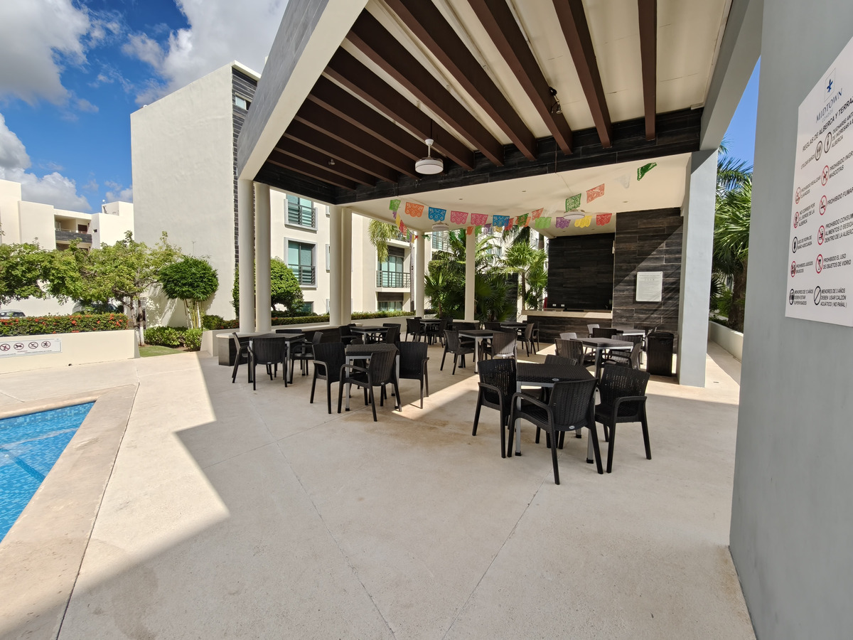 El departamento se encuentra en el conjunto Midtown, donde cuentas con una alberca de gran tamaño con camastros y sombrillas, zona de asador, área social techada con mesas y sillas, área infantil, área verde y mini cancha de soccer; además de doble filtro de seguridad.