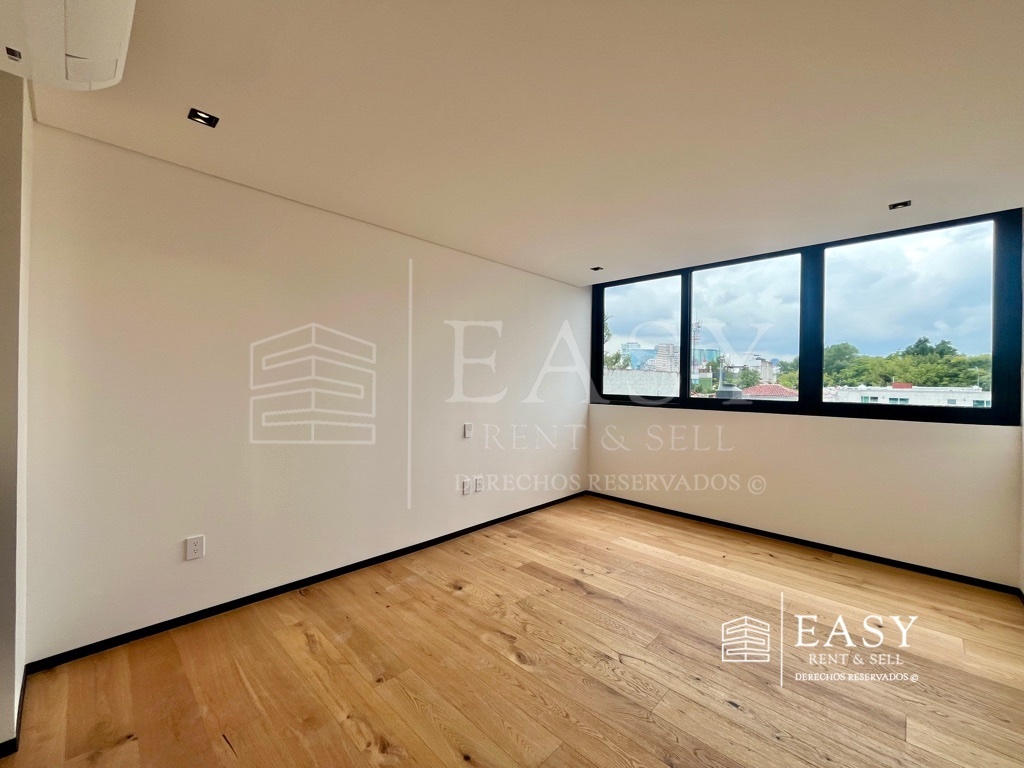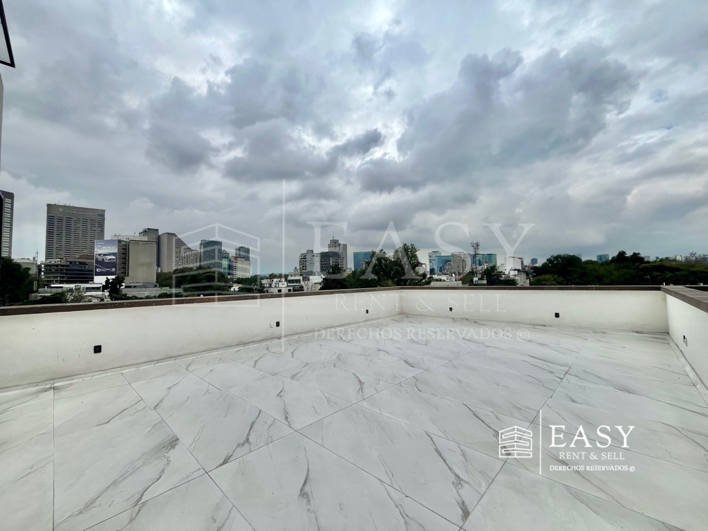 Exclusivo penthouse en renta totalmente a estrenar. Ubicado en una de las mejores calles de Polanco, con vistas a las copas de los árboles y mucha luz natural.