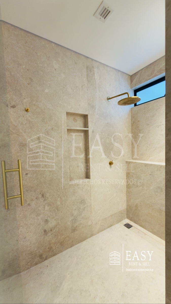 Elevador llega directo al departamento, el cual consta de 190 mts habitables, teniendo un estancia muy amplia con techos altos, excelente luz natural, salida a dos balcones y se integra la cocina al mismo espacio, equipada con electrodomésticos de punta. Asimismo hay un área de servicio con cuarto y baño completo impecables. En el área privada hay dos recámaras cada una con vestidor y su baño, recubiertos de mármol ivory.