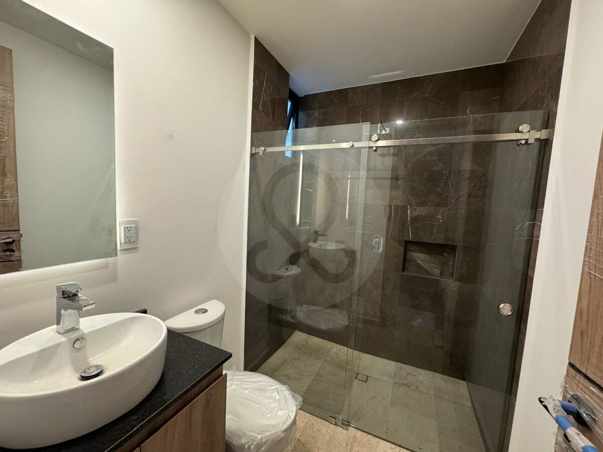 Departamento en edificio boutique ubicado en la colonia Roma Norte. Con una superficie total de 100m2, este inmueble cuenta con dos recámaras, cada una con baño completo y clóset. La cocina es abierta al área social, con amplios espacios y equipada con refrigerador y cubierta de granito. Además, cuenta con área de lavado independiente. El edificio cuenta con solo 7 departamentos, lo que brinda exclusividad y privacidad a sus residentes.. Equipado con gimnasio. Departamento exterior, lo que garantiza una excelente iluminación natural. Mantenimiento y luz incluido en la renta, así como servicio de vigilancia las 24 horas. Pisos de mármol en todo el inmueble.