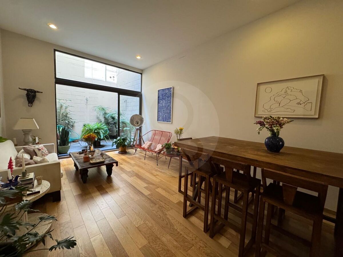 Departamento en renta en edificio boutique en la Roma Norte con fachada catalogada. Muy buenos acabados, distribución en un sólo nivel y techos altos,. El departamento cuenta con 2 recámaras, cada una con su propio baño, y la recámara principal tiene vestidor. Sala y comedor con salida a una terraza privada, cuarto de TV o espacio para oficina, cocina integral independiente y estacionamiento para 2 autos. Excelente ubicación en la Roma Norte, cerca de restaurantes, comercios y del corredor de oficinas de Reforma y Polanco. Departamento interior y silencioso