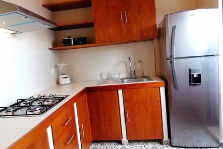 Casa de 2 plantas tipo departamento amueblado: planta baja: Sala-comedor, cocina, área de servicio. Planta alta: 1 habitación con baño completo Precio amueblado: $9,400