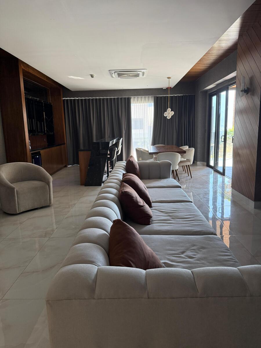 Amplia sala y comedor, cocina amplia, abierta, terraza con espacio para sala exterior.