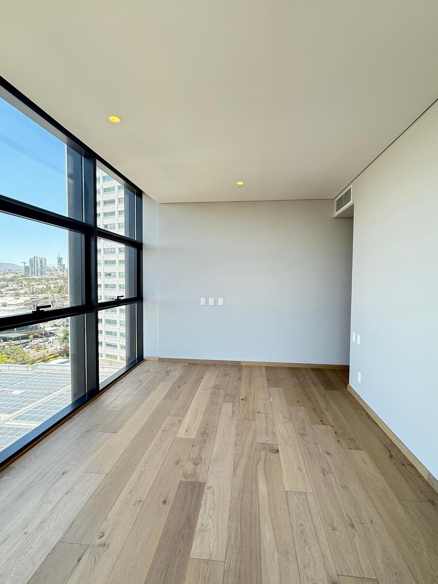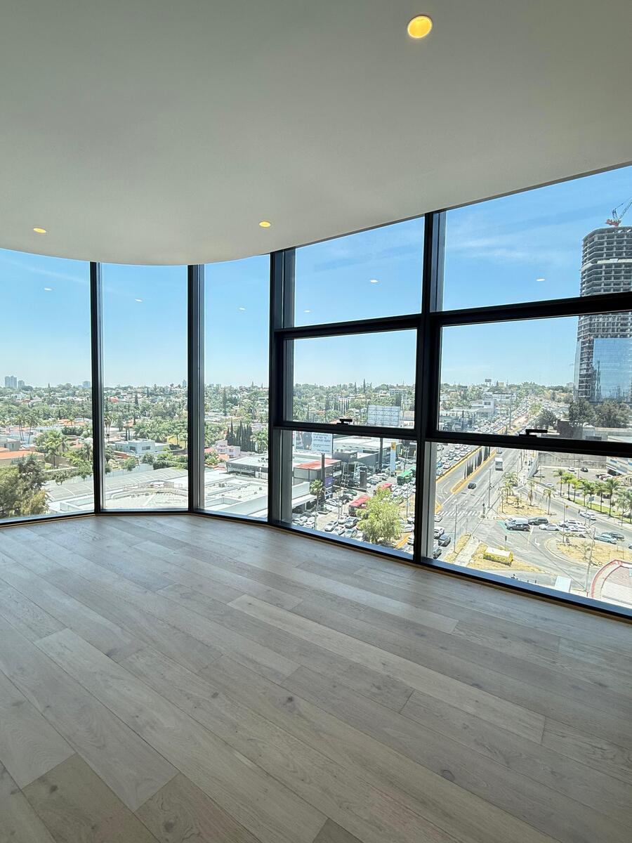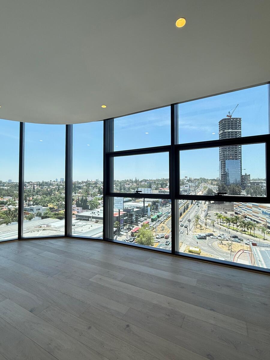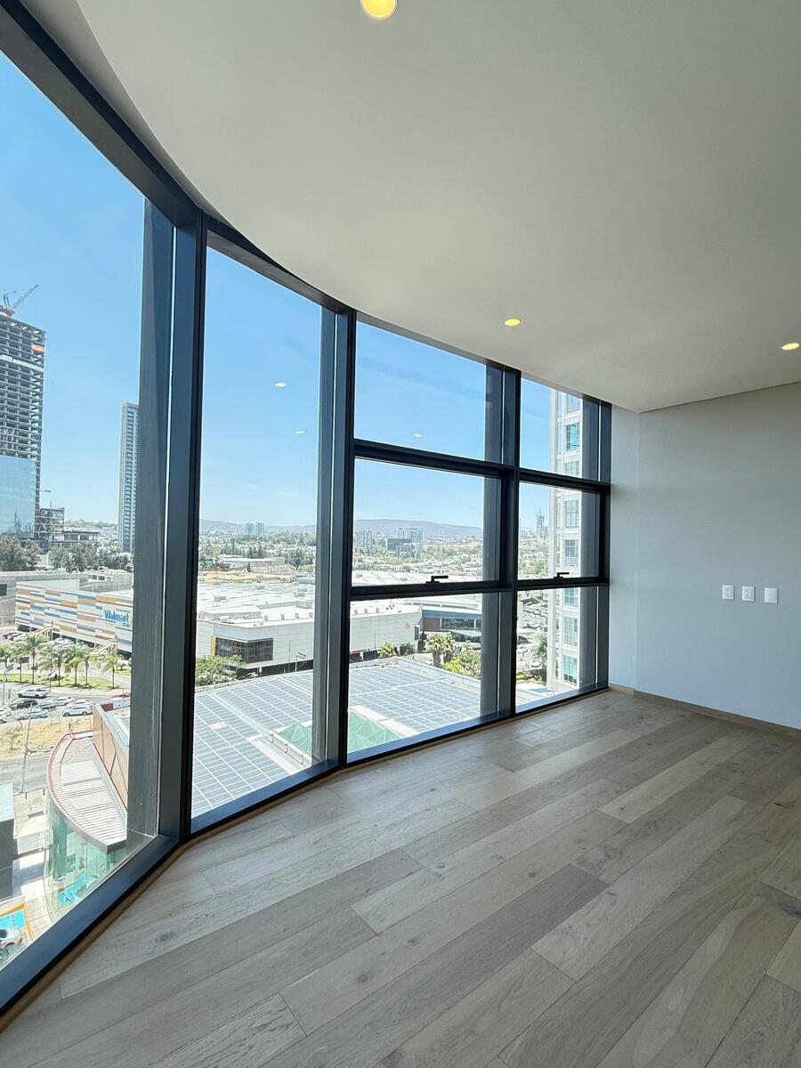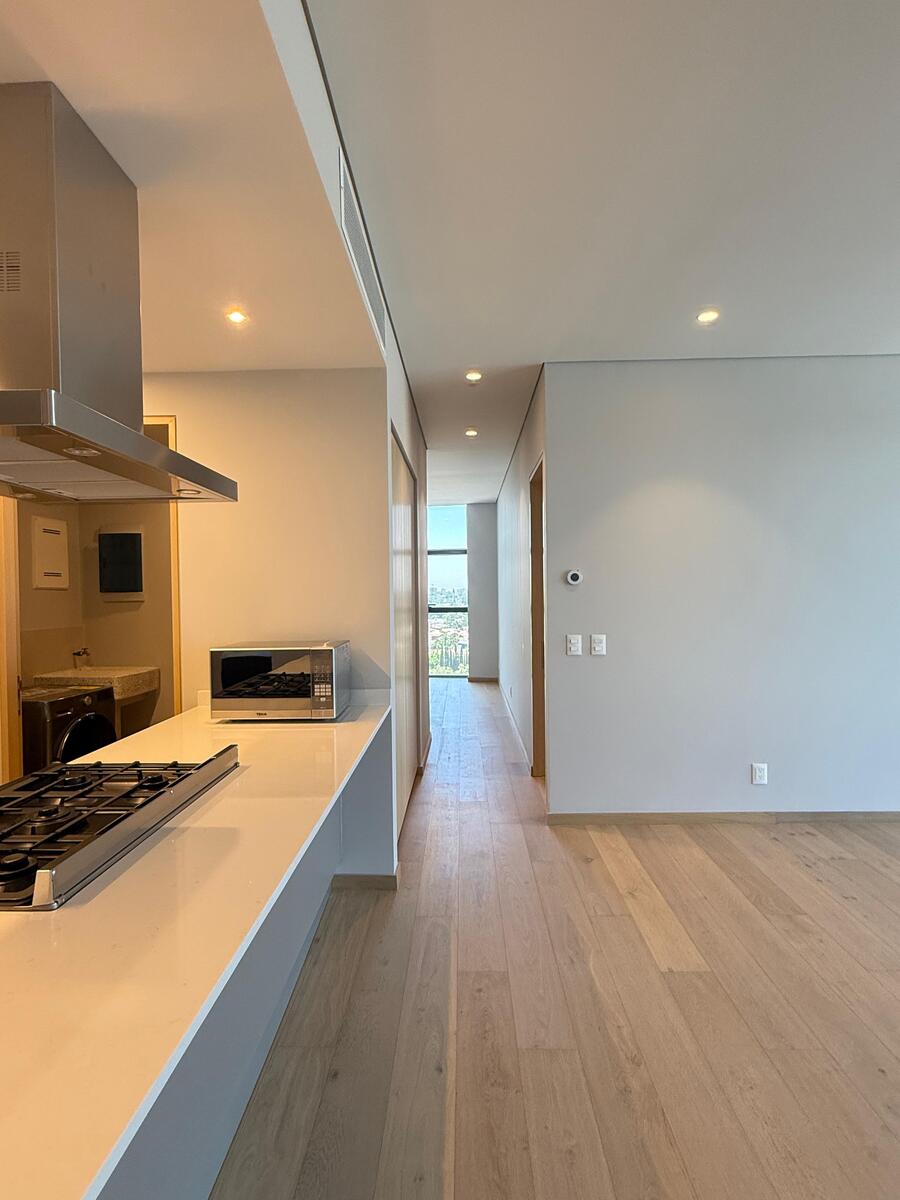 Departamento situado en una de las mejores zonas de todo Zapopan. A 2 minutos de Andares, con vista espectacular a av. Patria y Acueducto se encuentra esta propiedad. El departamento cuenta con un mono espacio de sala comedor con ventanales de piso techo que se abre a un balcón panorámico.