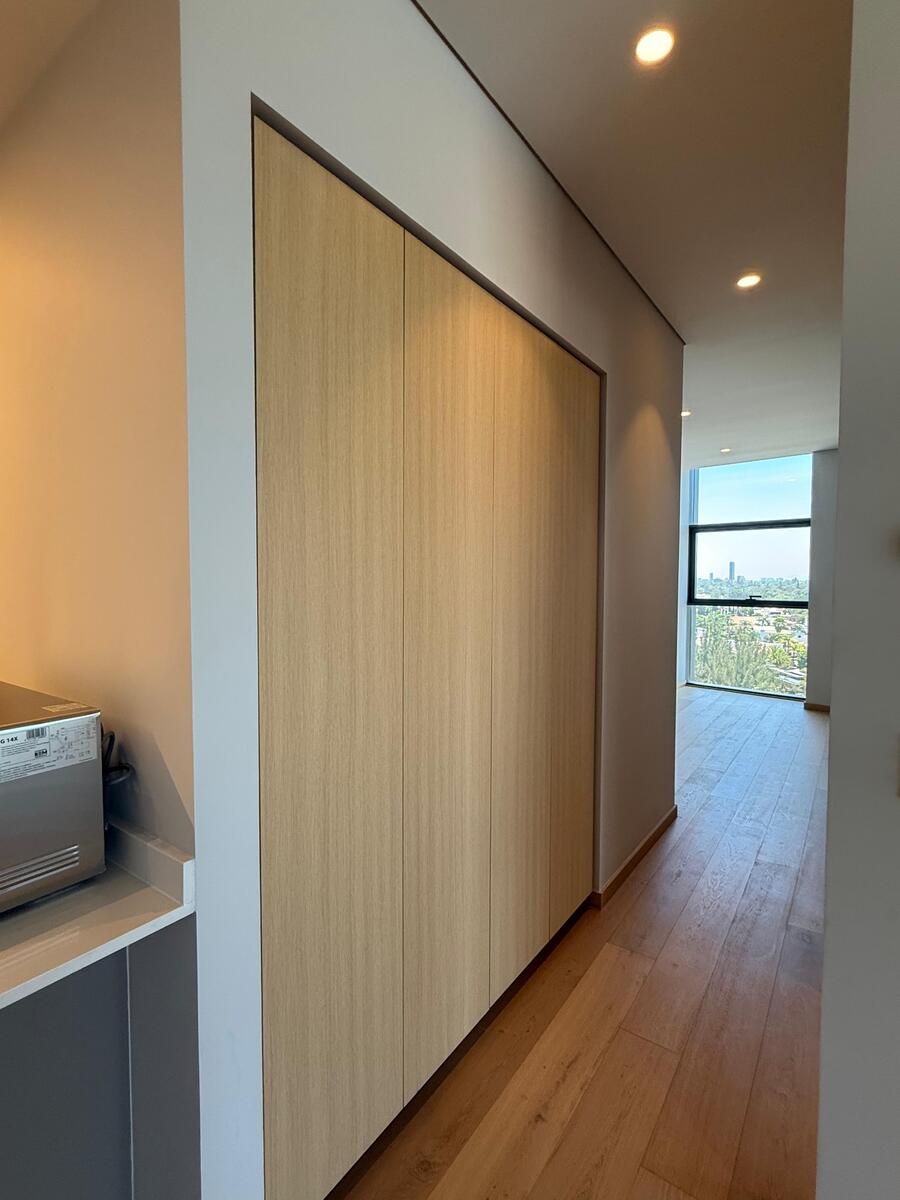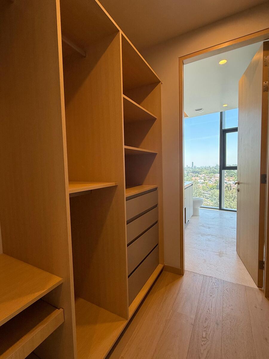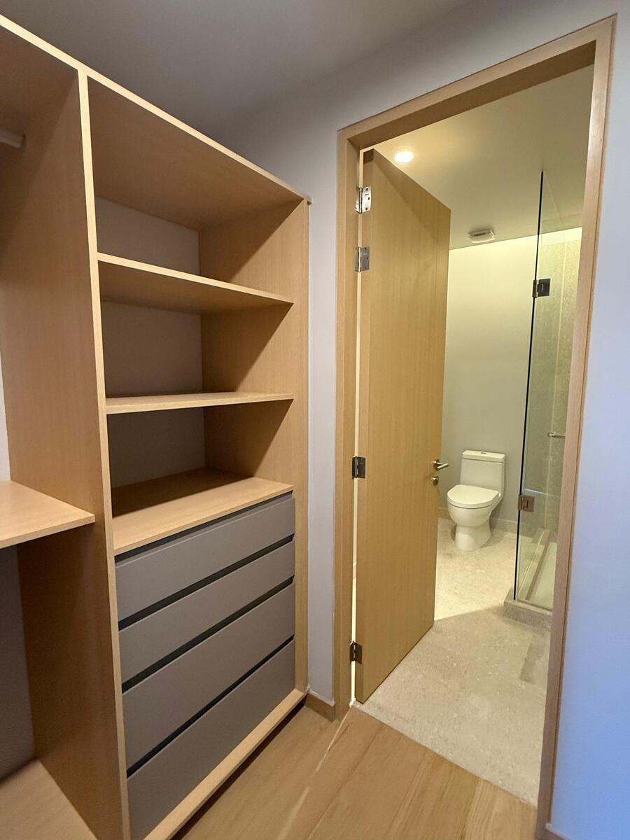 En el distribuidor al área de noche se localiza un closet de blancos con terminados elegantes y discreto a la vista como remate visual. 2 recamaras, de las cuales cada una se compone de closet vestidor y baño completo con canceles de cristal en regadera.