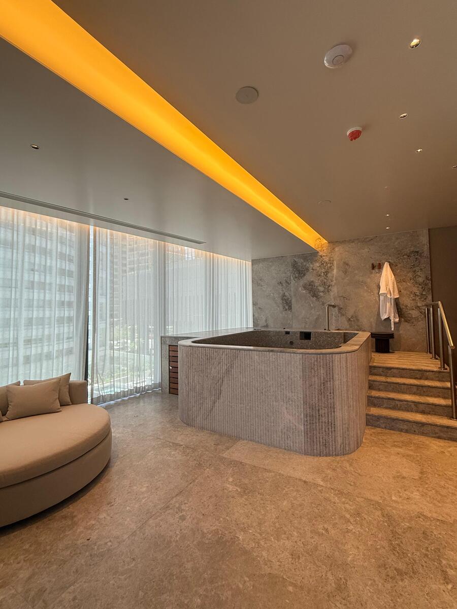 • Spa damas y spa caballeros cada uno con barber shop, nails bar, cabinas de masaje, lockers, vestidores, sauna, vapor, regaderas y jacuzzi