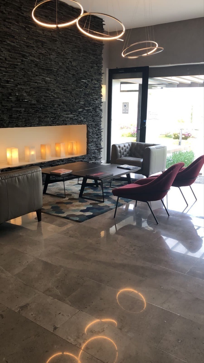 Tiene estacionamiento techado para dos autos y amenidades que incluye alberca climatizada, gimnasio, salón de eventos, salón de juegos , ludoteca y jardines con asadores.y horno para pizzas .