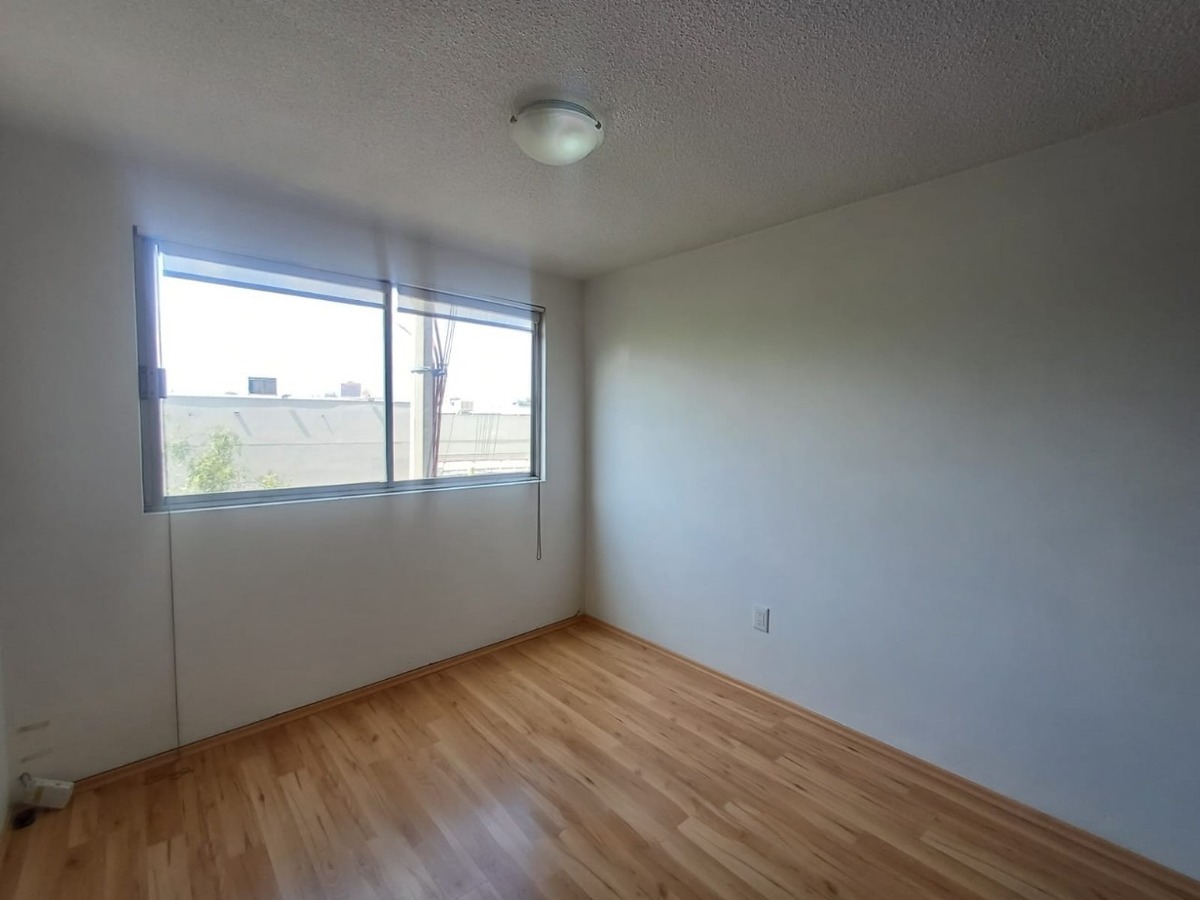 Cuenta con 99m2 habitables, ubicado en 3er. piso por escaleras, exterior, sala comedor, 2 recámaras, 2 baños, amplia cocina integral, balcón, jaula de tendido y bodega en azotea, 1 lugar de estacionamiento para auto pequeño.