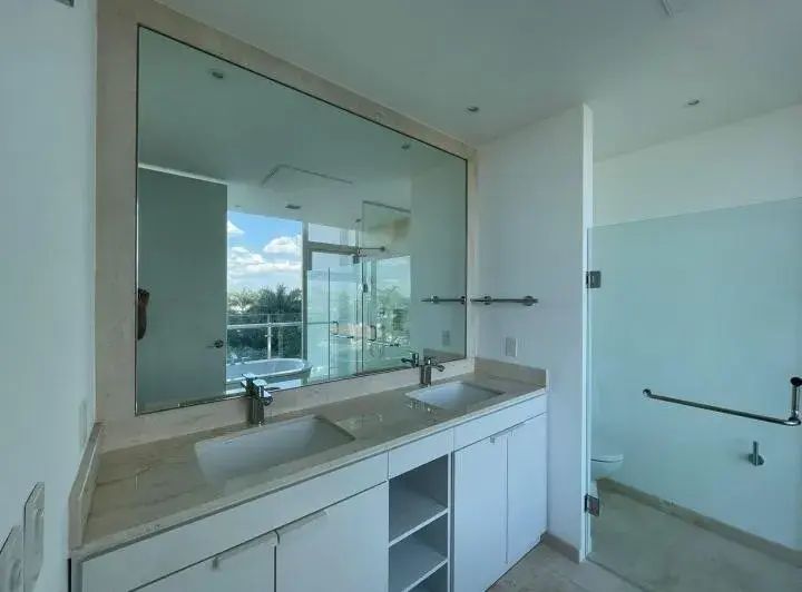 • Recámara Principal #1 con baño completo: doble lavabo, tina, regadera con canceleria de Cristal y closet vestidor: c/ repisas de cristal, muebles de madera en tonos claros