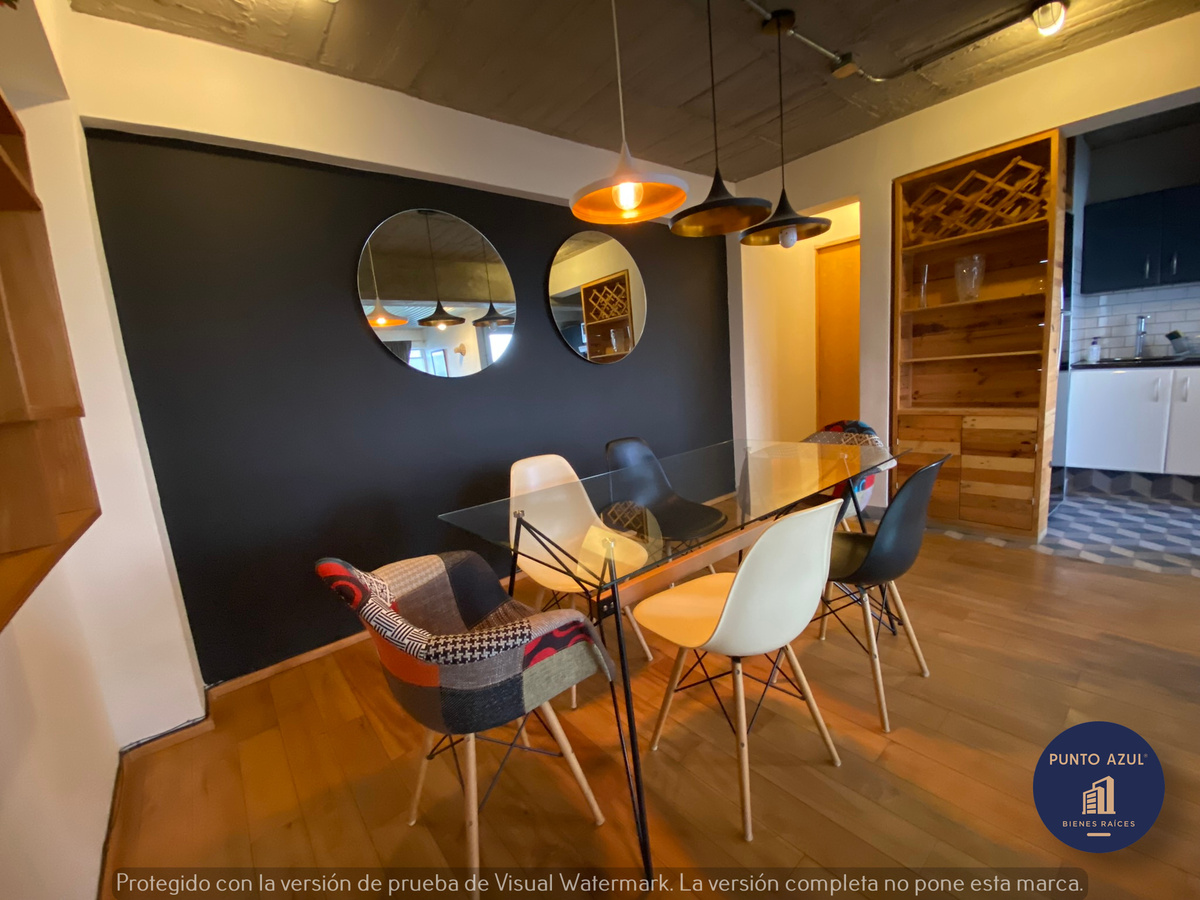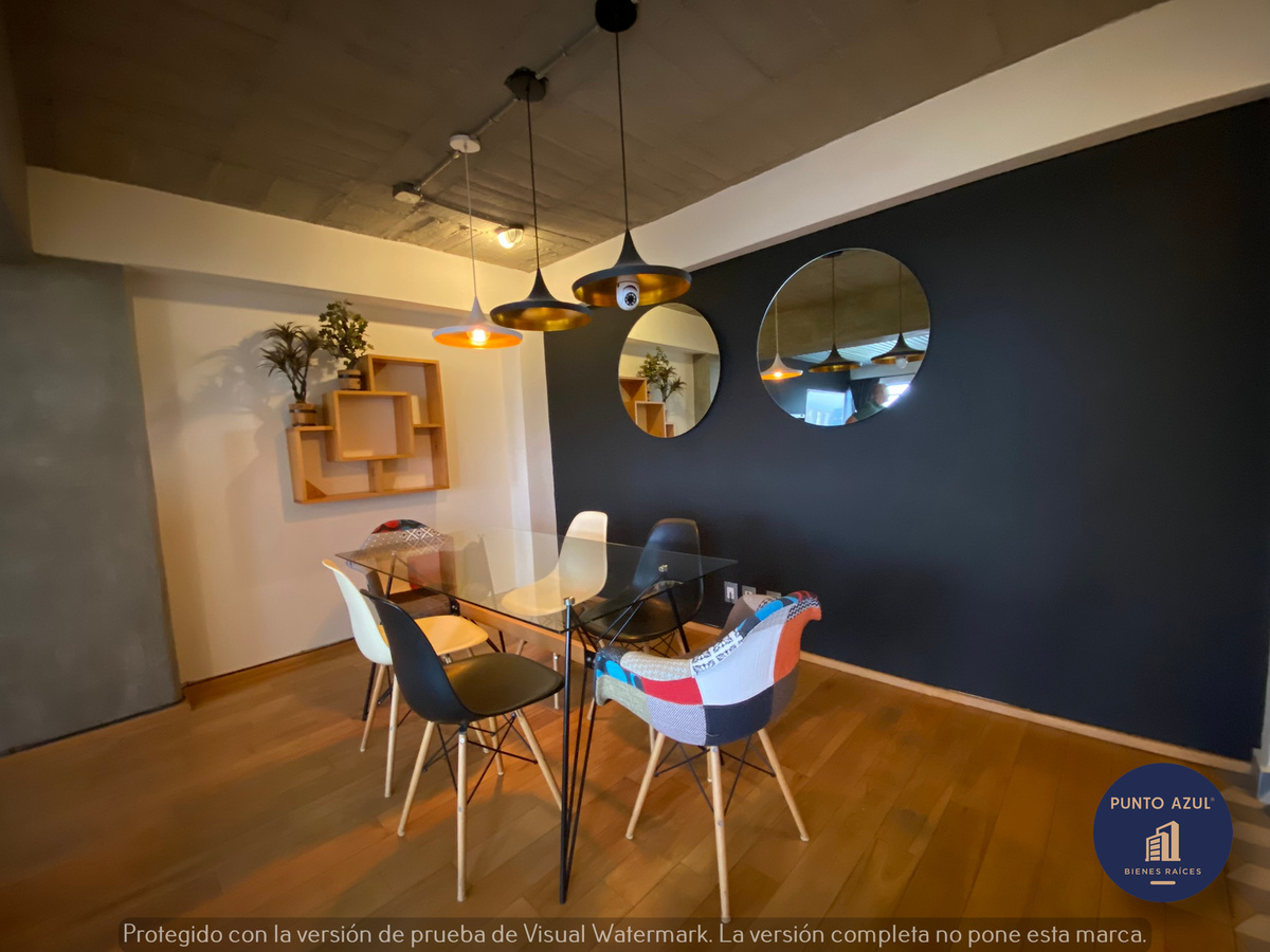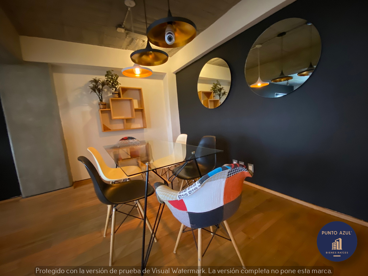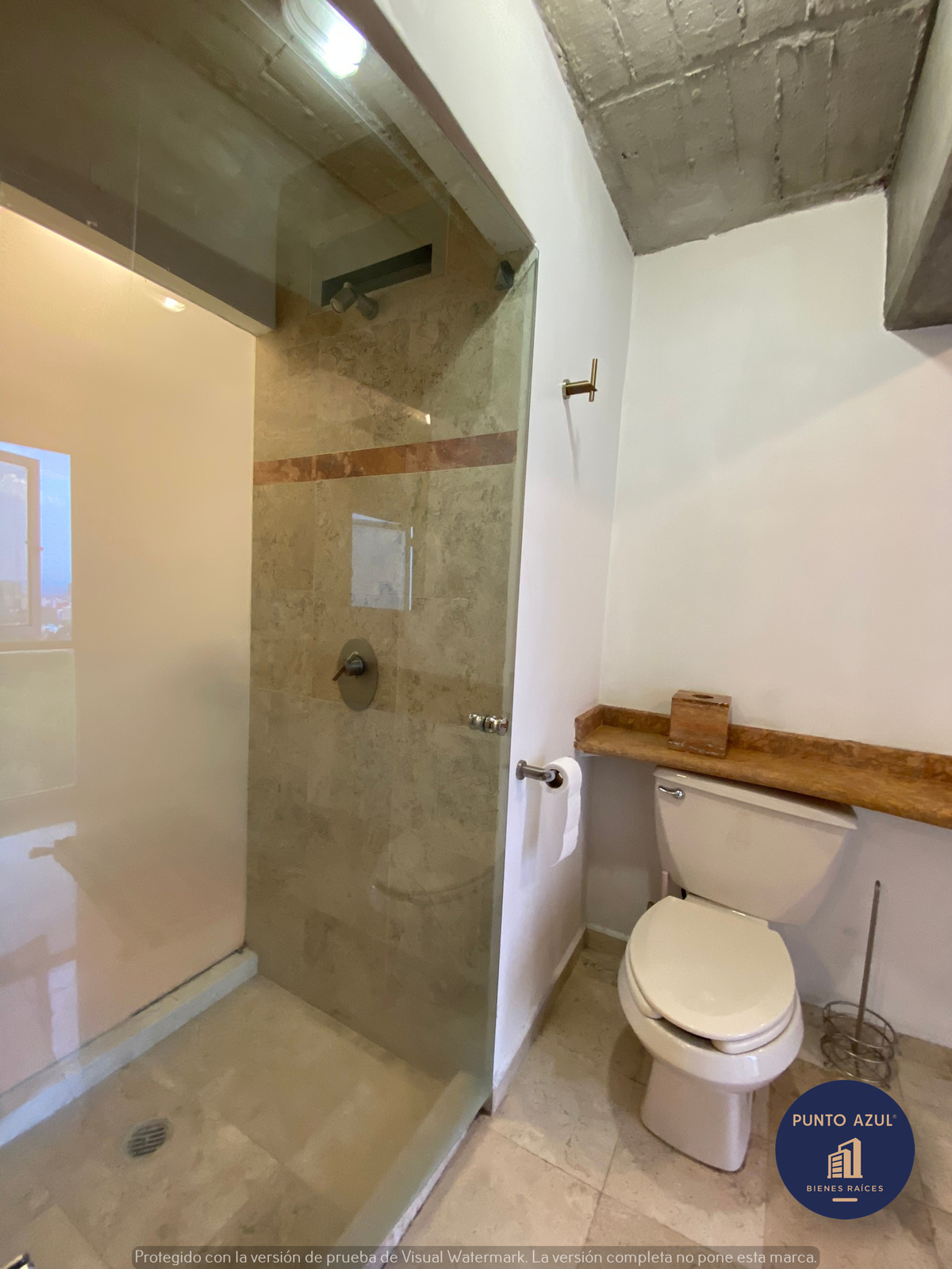 Vidrios templados, pisos de ingeniería, microcemento, mármol en baño, finos accesorios en baño, cancel de vidrio templado en baño, cocina equipada con horno y refrigerador, mueble de madera empotrado en comedor, lamparas y cortinas.