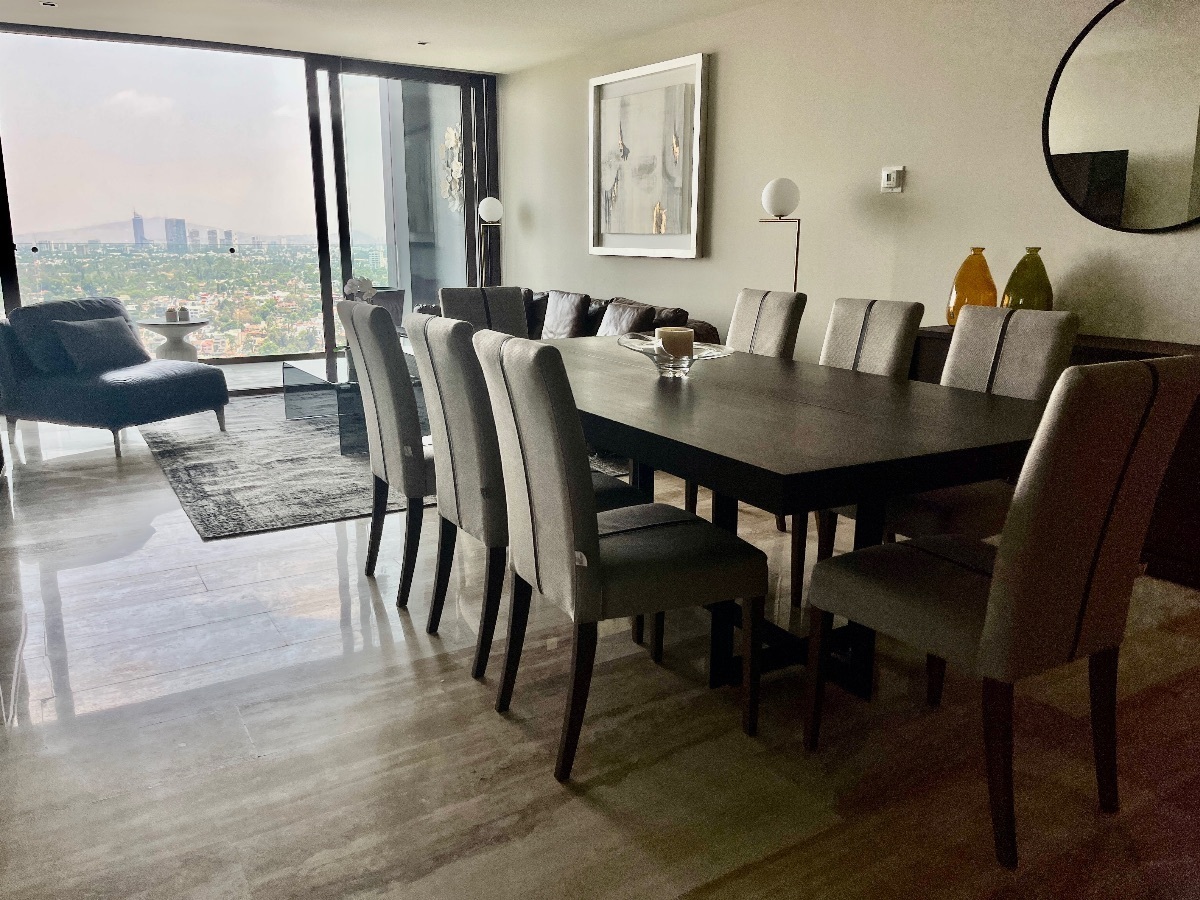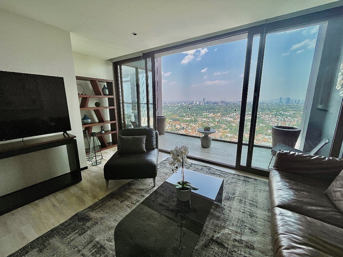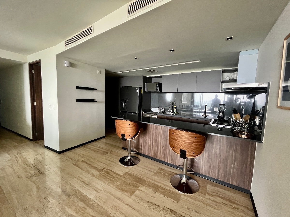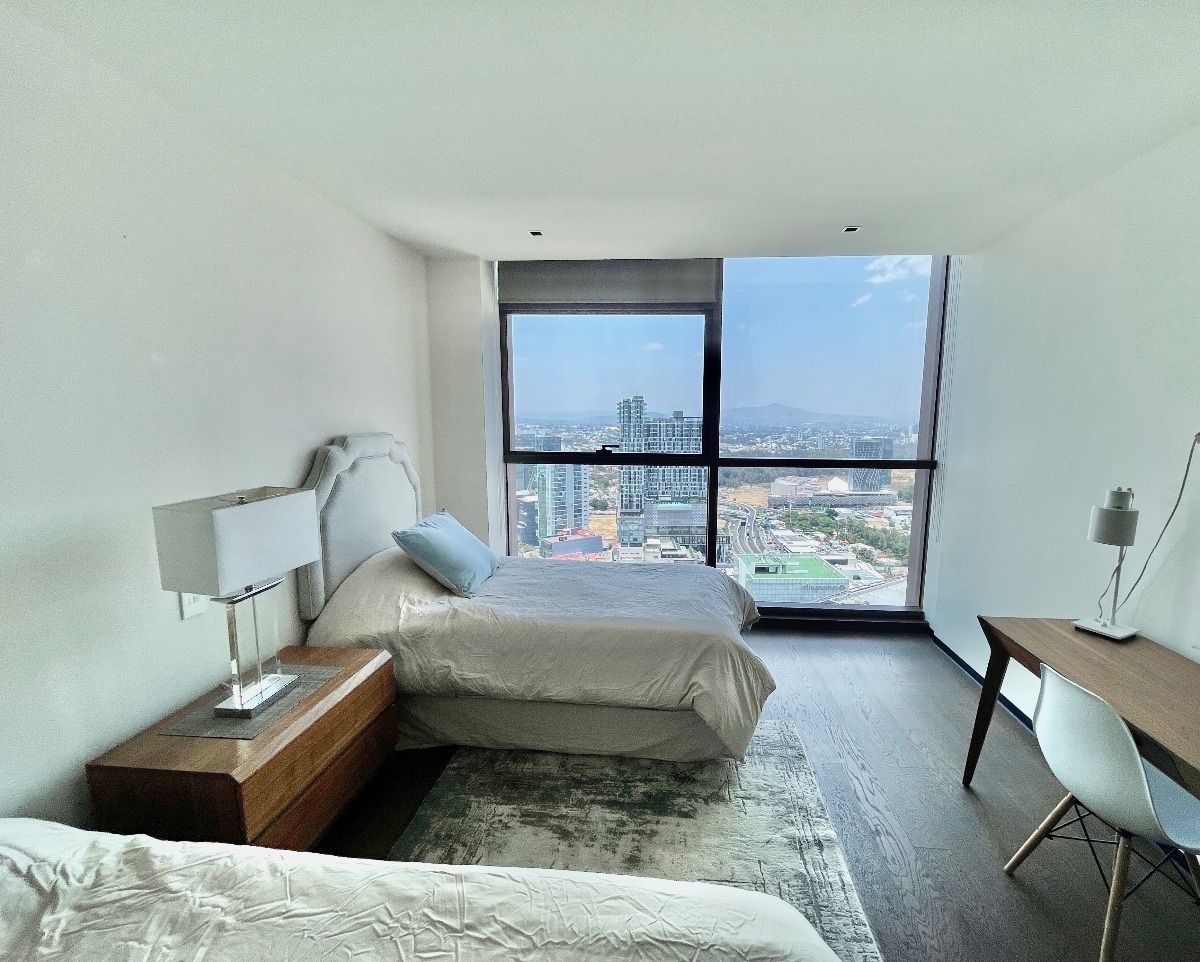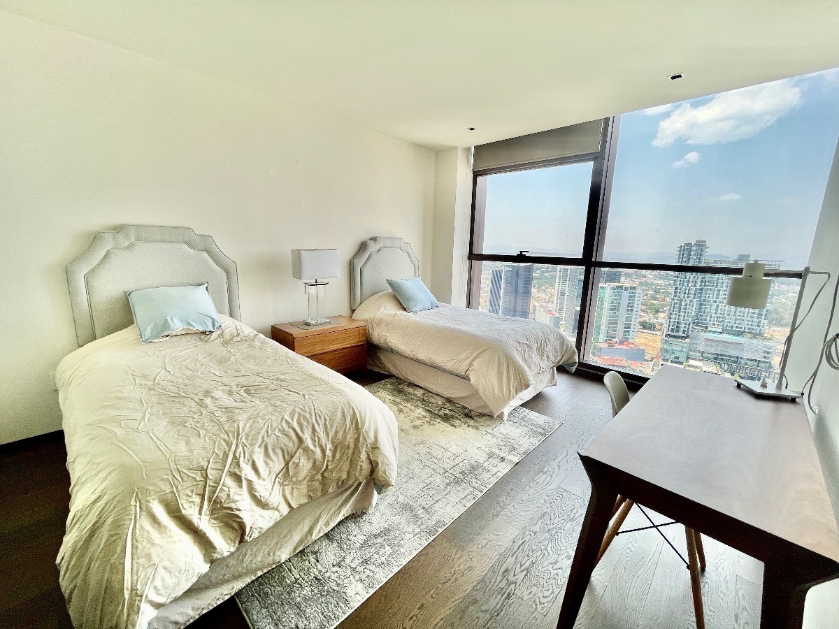 Departamento Amueblado Torre The landmarkPiso 28.Precio 73000 mxn (ya con mantenimiento dentro).162 m2Descripción:2 recamarasSala de estar Cocina equipada3,5 baños4 cajones de estacionamiento