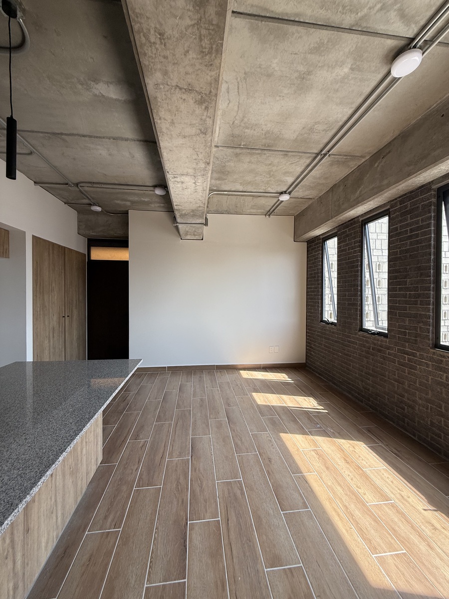 Los interiores destacan por su diseño tipo industrial, con acabados en concreto aparente, carpintería fina y ventanales amplios que llenan cada espacio de luz natural.