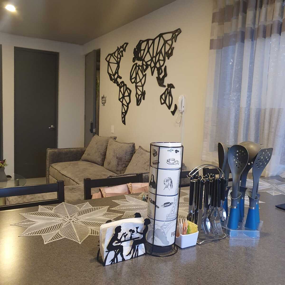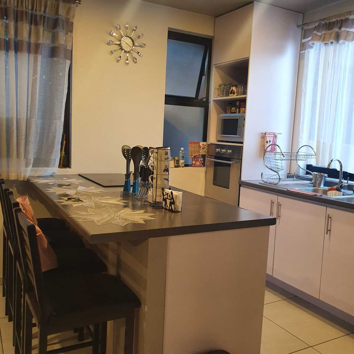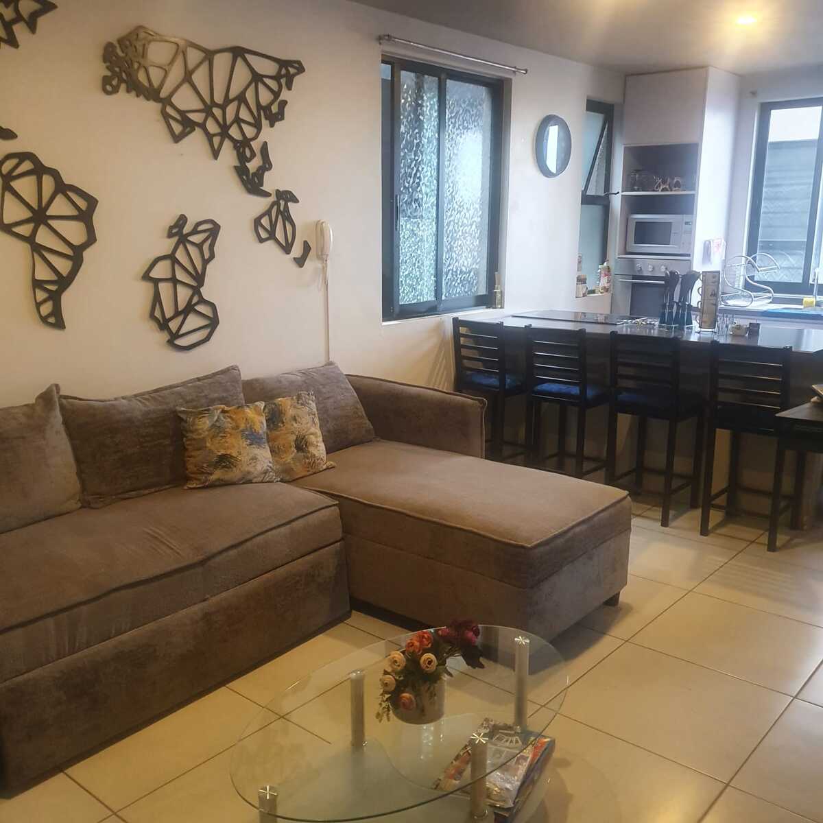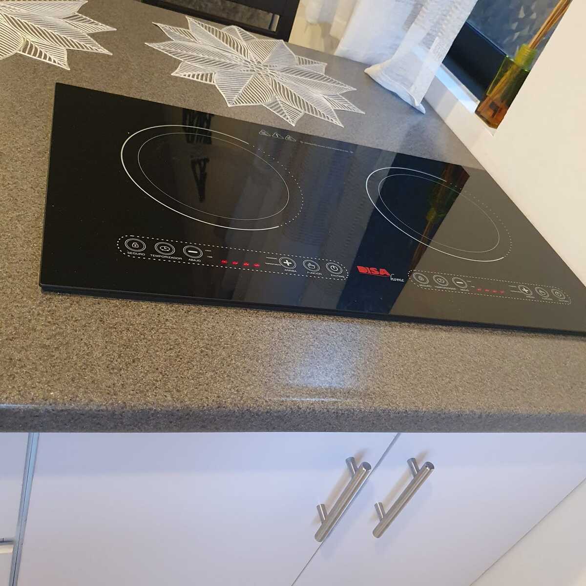 . Cocina integral, estufa eléctrica con horno empotrado y barra desayunadora