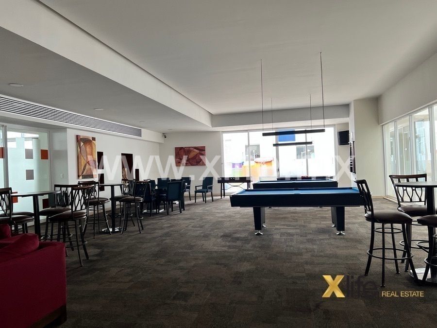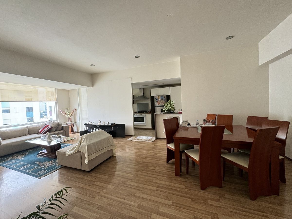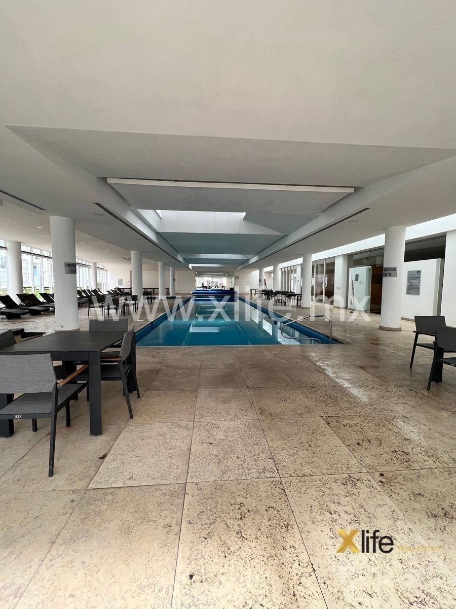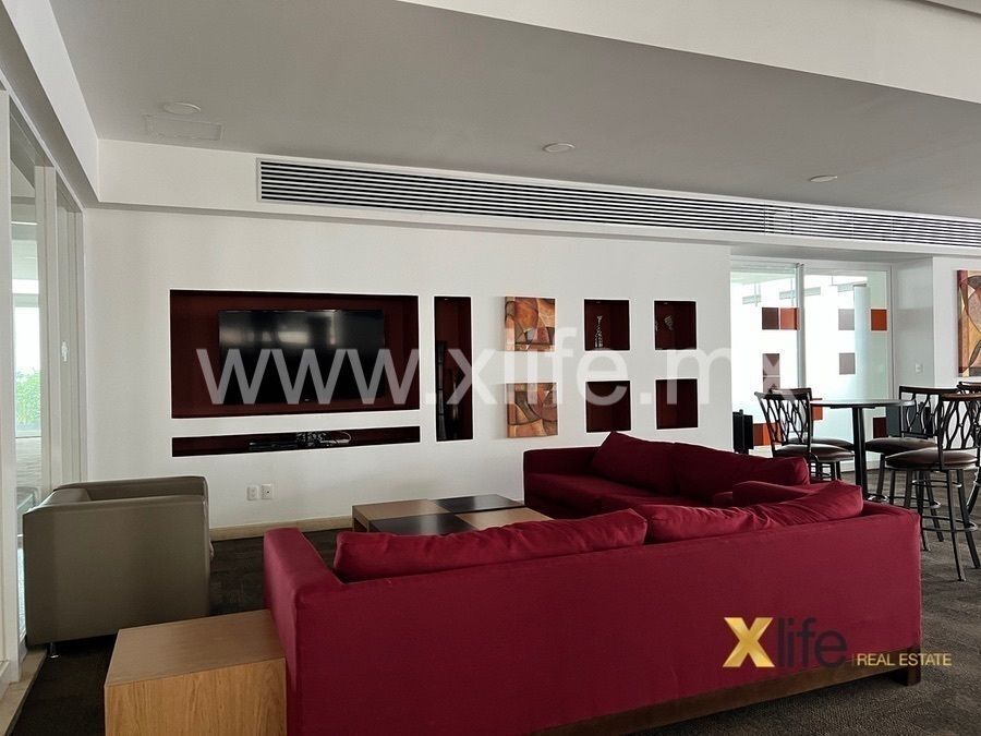 Excelente departamento en Atrio; muy iluminado, doble altura, en el mejor punto de conexión para las principales vialidades. Superficie de 105 m2, dos recamaras de muy buen tamaño, la recamara principal con un gran vestidor y baño, estancia de sala-comedor muy amplia, cocina abierta equipada. Cuenta con bodega amplia, dos lugares de estacionamiento. En el piso 13 con gran iluminación y clima acogedor todo el año, orientación hacia poniente, vista a jardín interior. Cuenta con vigilancia las 24hrs. Areas comunes: