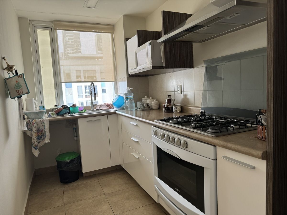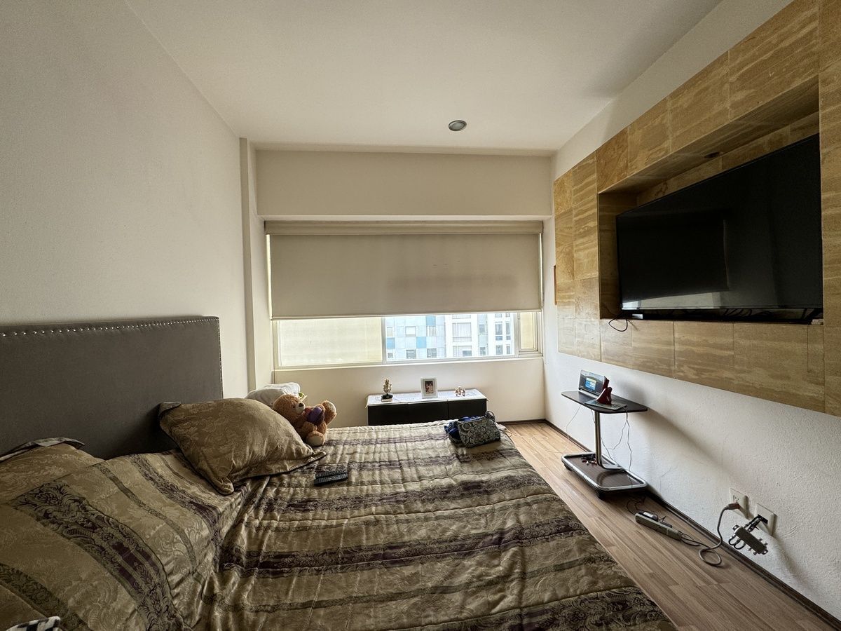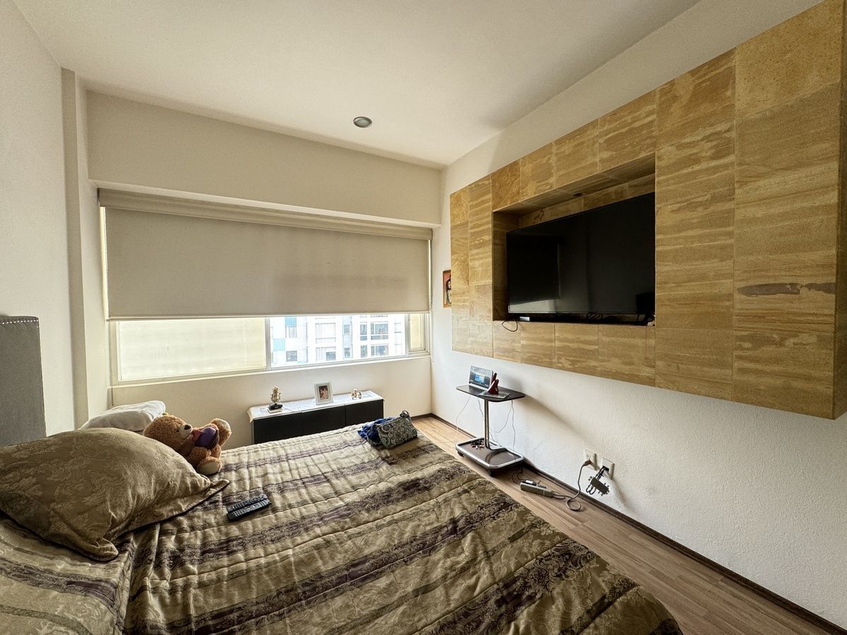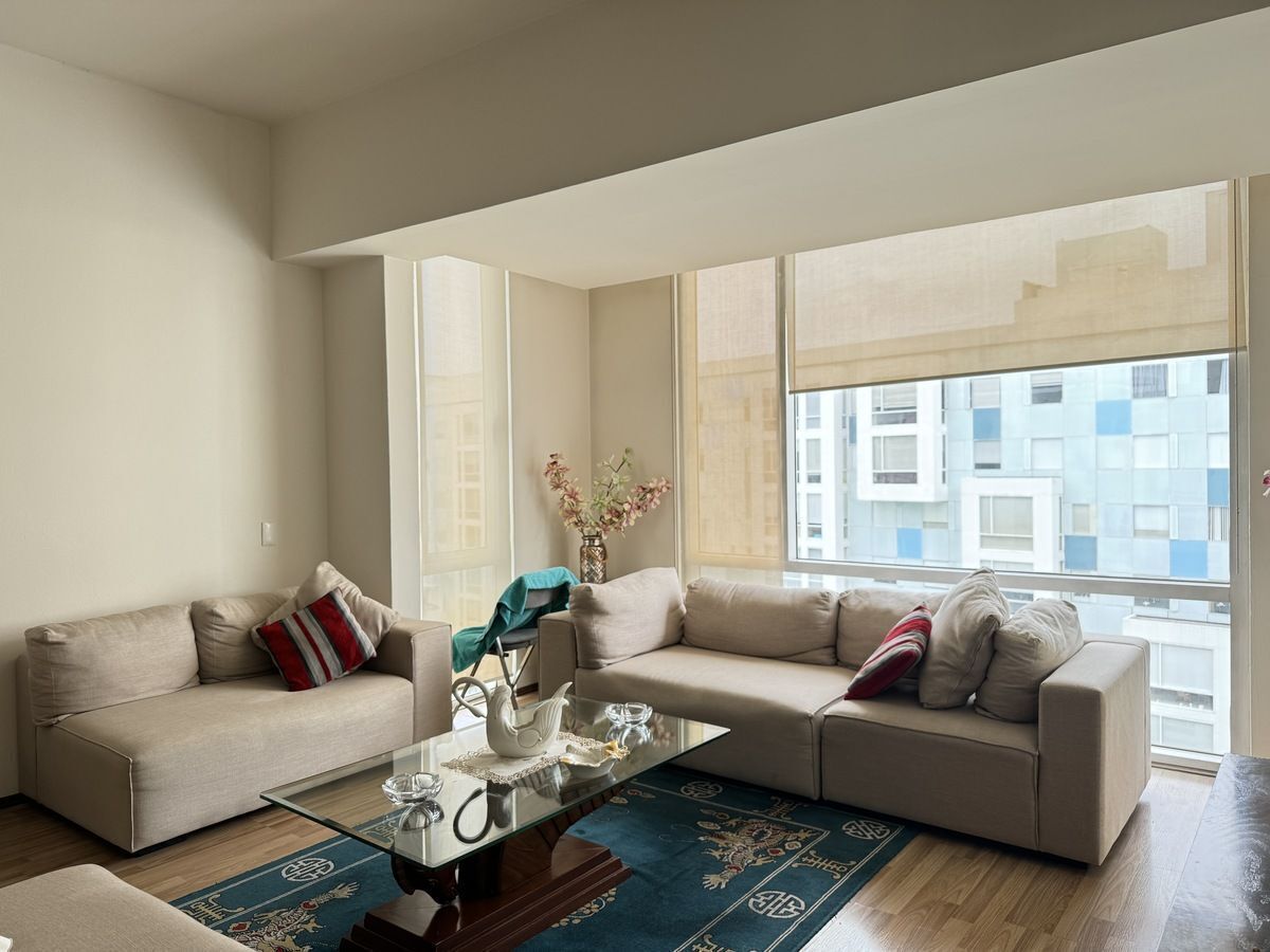 Excelente departamento en Atrio; muy iluminado, doble altura, en el mejor punto de conexión para las principales vialidades. Superficie de 105 m2, dos recamaras de muy buen tamaño, la recamara principal con un gran vestidor y baño, estancia de sala-comedor muy amplia, cocina abierta equipada. Cuenta con bodega amplia, dos lugares de estacionamiento. En el piso 13 con gran iluminación y clima acogedor todo el año, orientación hacia poniente, vista a jardín interior. Cuenta con vigilancia las 24hrs. Areas comunes: