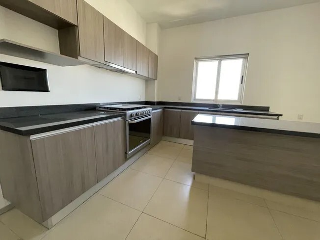 El departamento cuenta con 3 recámaras la principal con vestidor y baño completo, las otras dos tiene baño completo c/u y closet, baño en área social, amplio espacio de sala comedor en concepto abierto con ventanal de piso a techo y terraza, cocina privada con isla encimeras de granito, cuarto de servicio con baño completo, cuarto de lavado, bodega y 2 cajones de estacionamiento