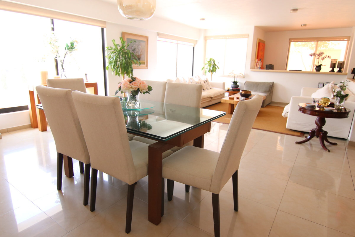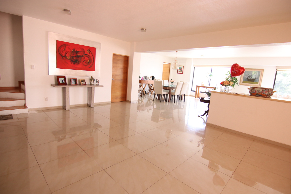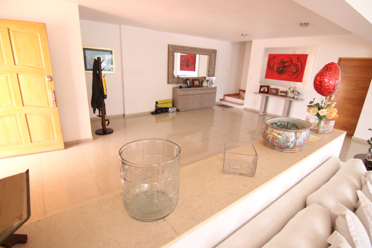 Cuenta con hall de recepción, sala comedor, amplia cocina con desayunador, terraza, family y 3 recámaras con baño y vestidor. Cuenta además con cuarto de servicio y lavado, bodega y tres estacionamientos.