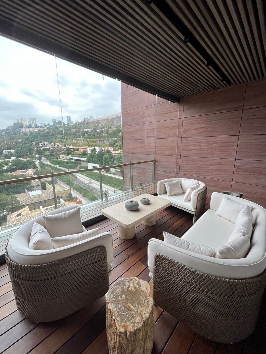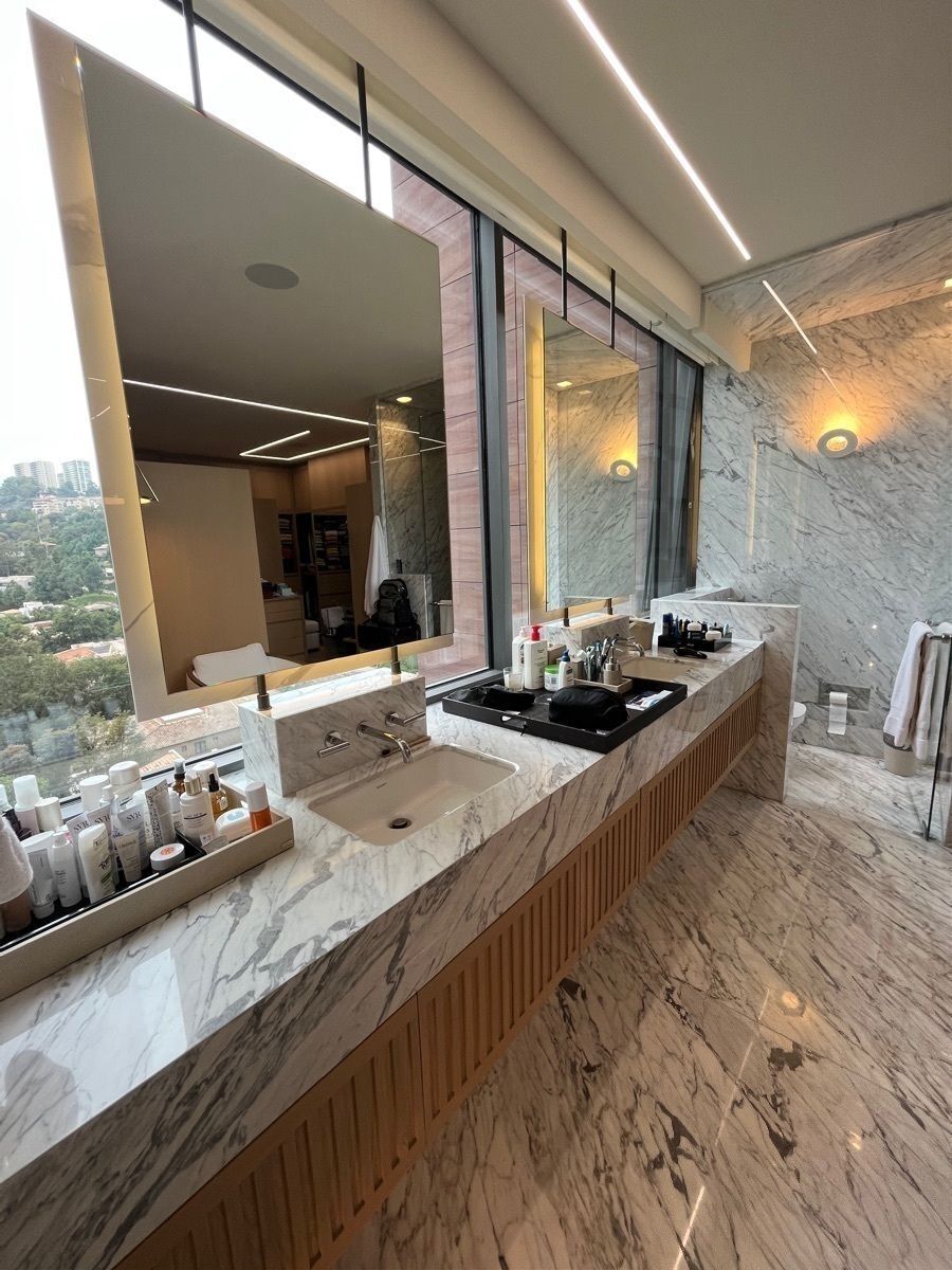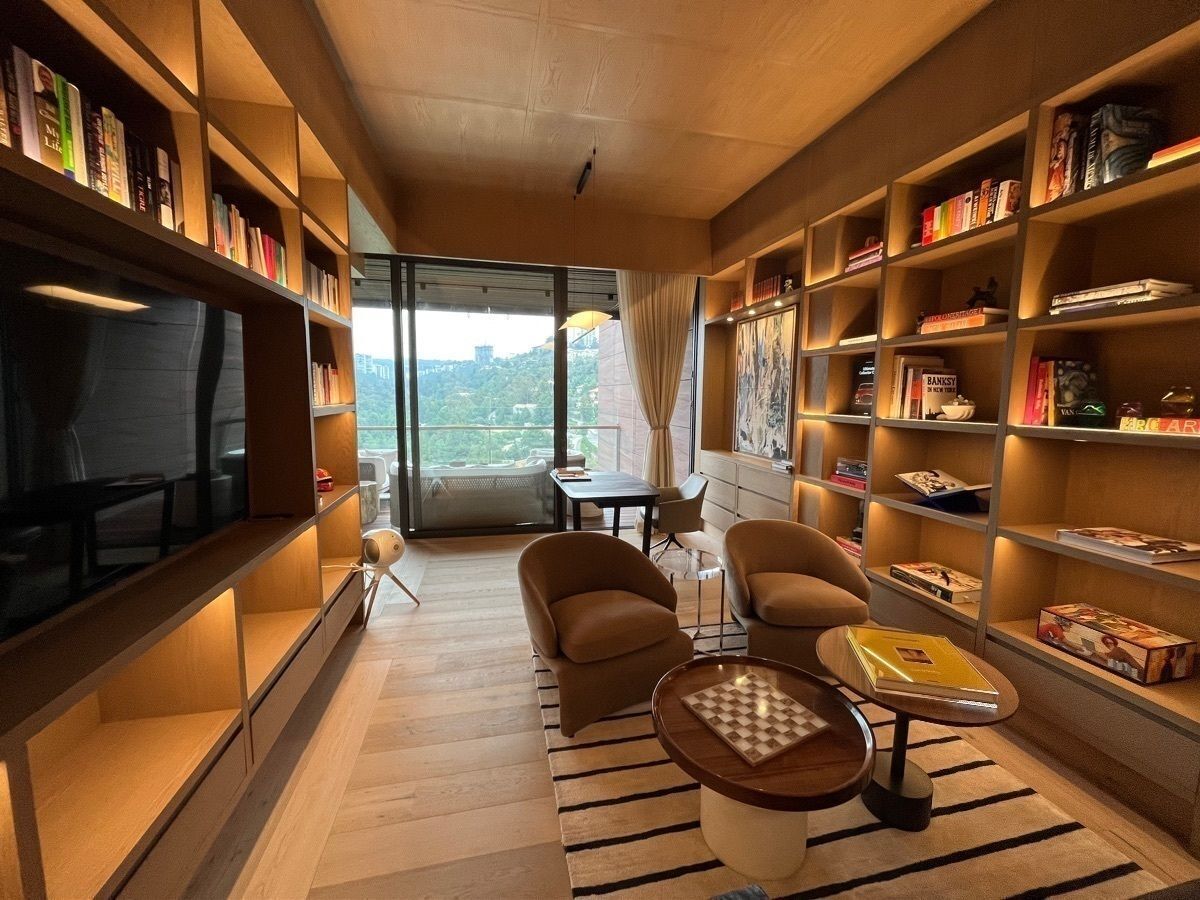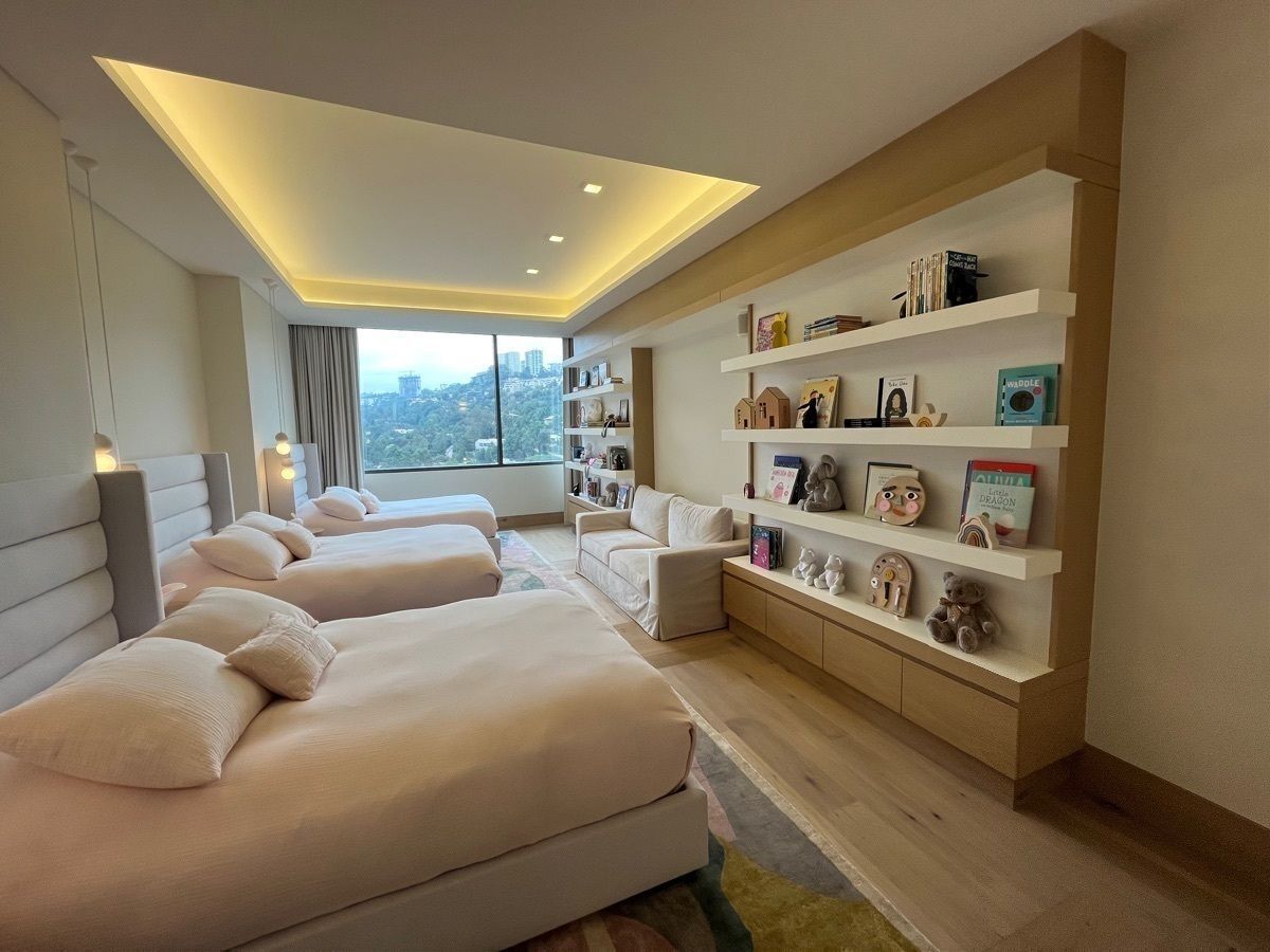 Departamento completamente inteligente con acabados de primera clase, pisos de madera, mármoles, Proyector en la sala, bocinas en sala nexo, sonidos sonos en todo el depa, cortinas sala, estudio y recámara principal automatizadas, aire y calefacción, iluminación inteligente, 2 cámaras de seguridad, puertas con huella digital, boiler LG con agua caliente todo el tiempo y termostatos sonos y se pueden programar, cocina wolf, cava subzero,