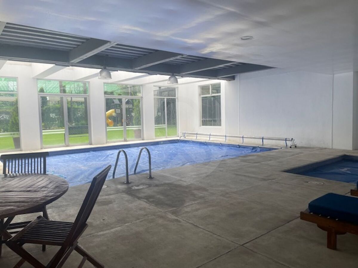 Departamento en venta de 160 mts ubicado en Huixquilucan, Edo. de México. Consta de tres recamaras, 2 baños completos y un medio baño. Amplia sala y comedor, cocina integral con despensa. Family room, cuarto de servicio con baño completo y área de lavado. Dos estacionamientos independientes. Vigilancia 24 horas. Incluye servicios como juegos infantiles, gimnasio, salón de eventos, cancha de básquet, cancha de Paddle, zona de barbacoa, seguridad nocturna, pileta climatizada, sala de juegos y más. ¡Excelente oportunidad de inversión!