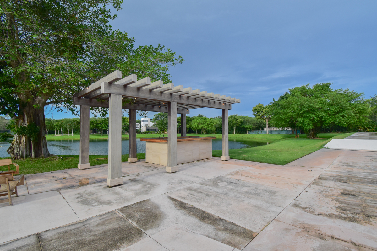 Cocina integral: Equipada con parrilla, campana, horno y una elegante isla central con meseta de granito.
