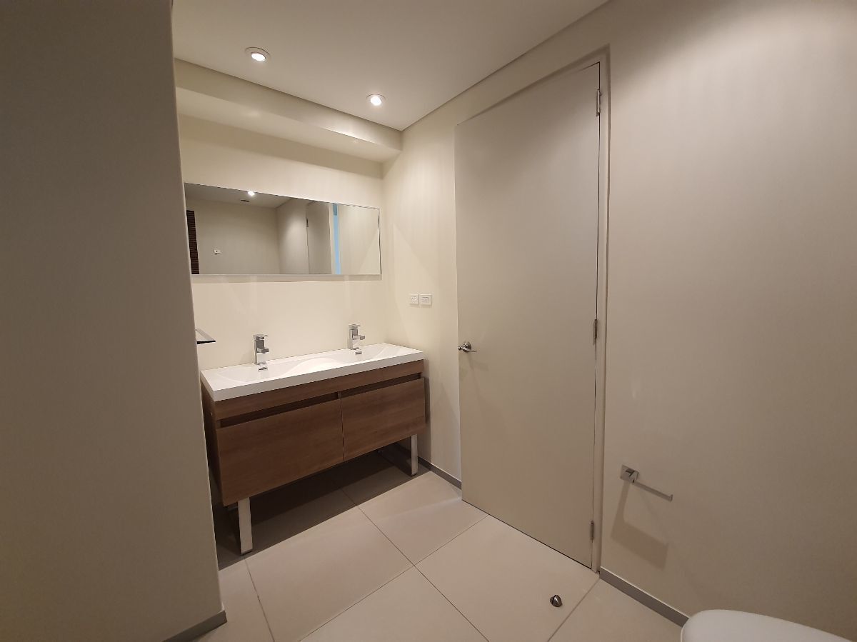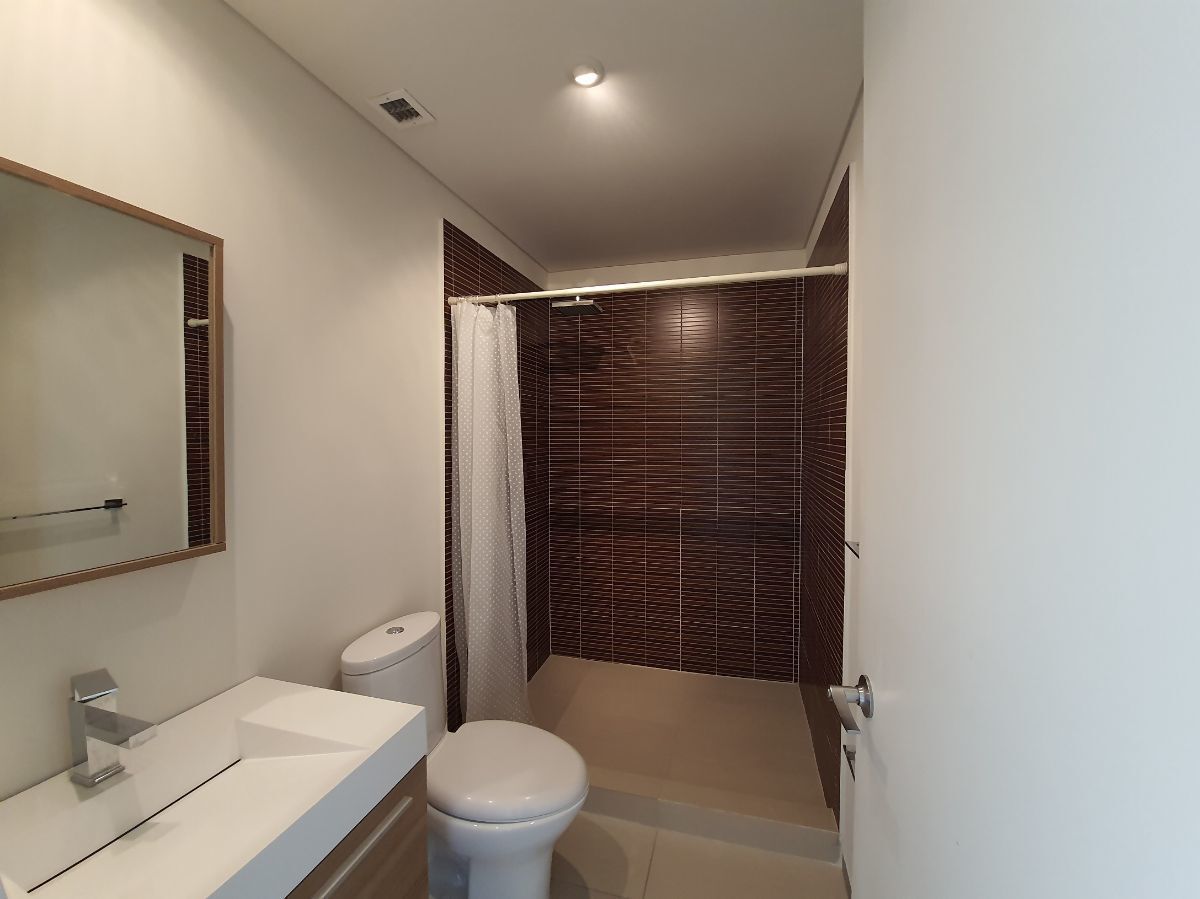 Estancia de buen tamaño que conecta con estudio o family room con persianas de malla con filtro solar, 2 recámaras con persianas blackout y malla con filtro solar, en la recámara principal el baño tiene cancel de vidrio templado, área de lavandería integrada al departamento.