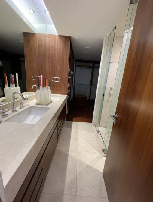 Acceso directo del elevador al departamento llegando a un vestíbulo grande con baño y clóset de visitas. El área social es muy amplia, la sala con acceso a una terraza con calentadores y una vista increíble, comedor, cocina con un pantry y despensa. Cuenta con un despacho (también con acceso a la terraza) al que se puede acceder por la sala o por el área familiar.