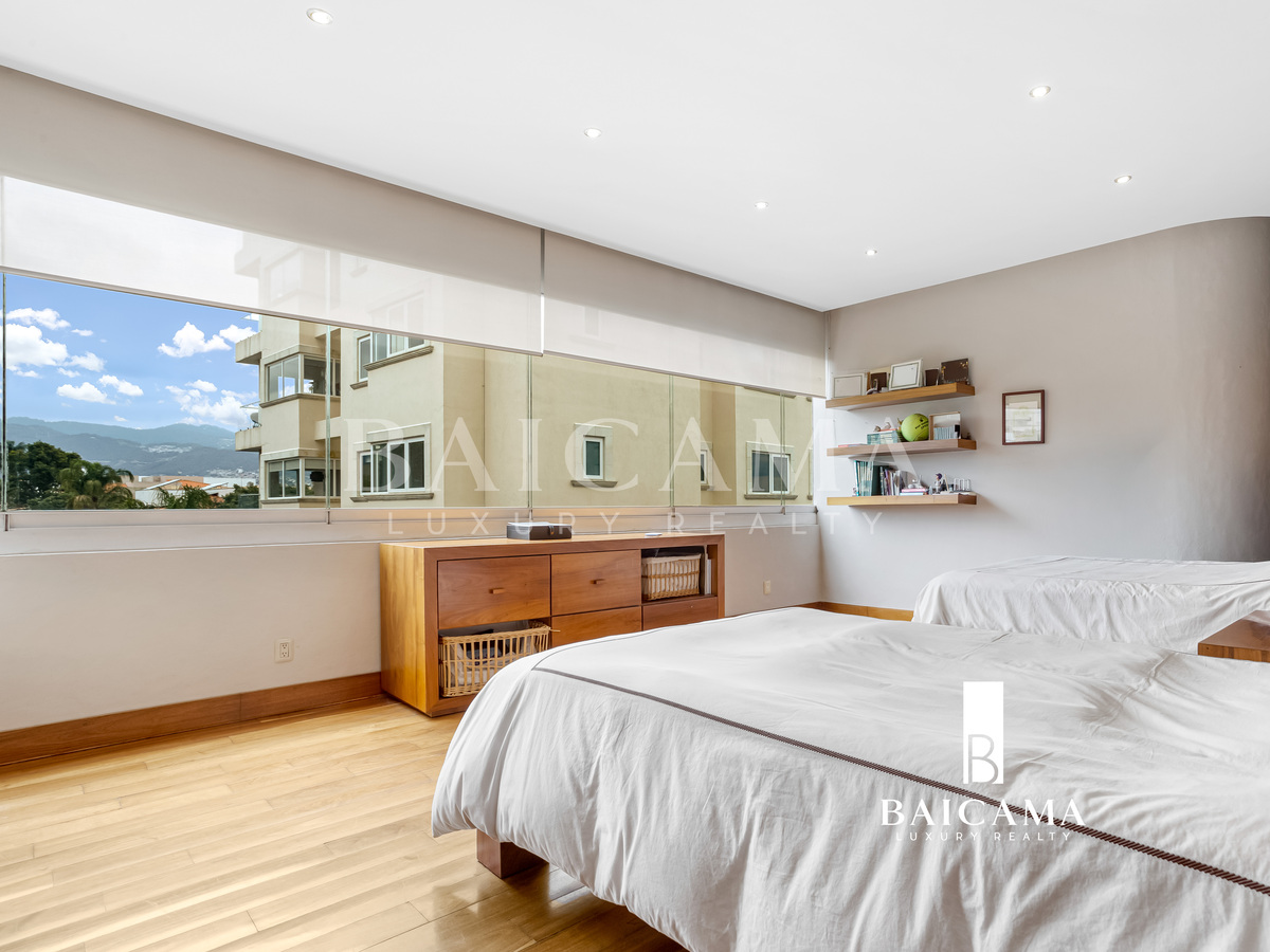 En una de las zonas más exclusivas y seguras del poniente de la ciudad, dentro del prestigiado fraccionamiento Lomas Country, se encuentra este amplio departamento de 400 m², distribuido en dos niveles y con una terraza con vistas abiertas a la Sierra de las Cruces, que enmarca el poniente del Valle de México.