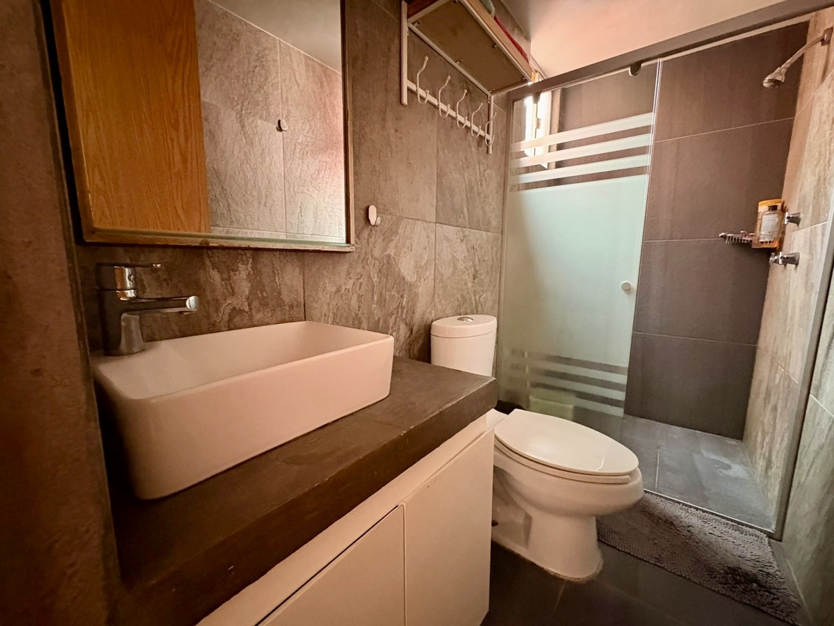 Consta de una muy iluminada y soleada estancia de sala y comedor, con ventanal de piso a techo, cocina cerrada, área de lavado, 2 recamaras con clóset, un baño con acabados en vidrio templado.