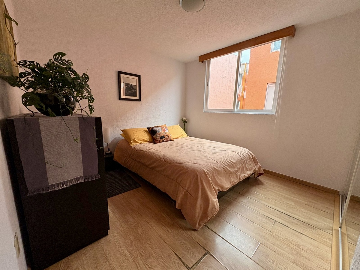 Acogedor departamento interior, cálido e iluminado con luz natural en todas sus áreas, sin ruido, con espacios amplios, armoniosos, techos altos, ubicado en 5° piso, y listo para habitarse