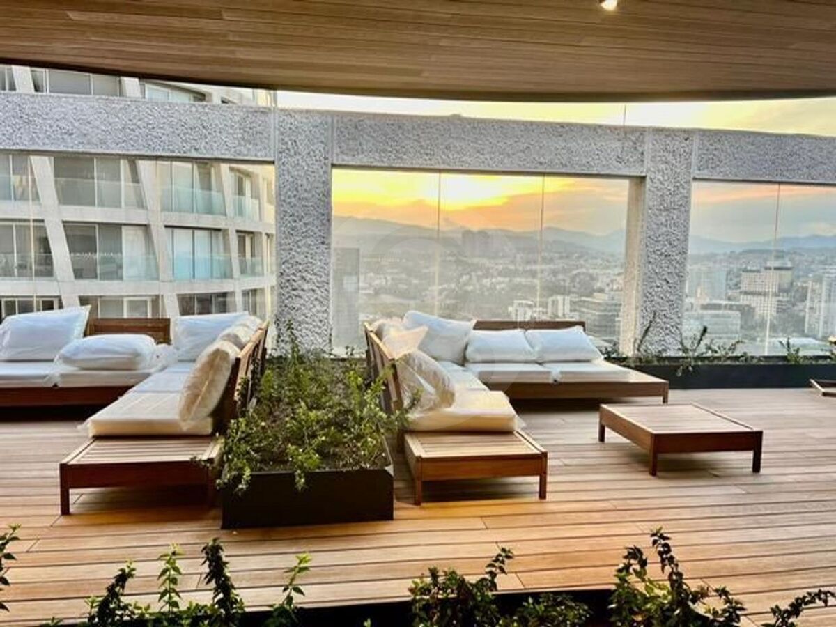 Se vende departamento en la Península Tower, ubicado en el piso 36 en Santa Fe. Con una superficie total de 120m2, consta de 2 recamaras, 2 baños y 2 estacionamientos independientes. Cuenta con balcón y vigilancia las 24 horas, así como valet parking. Entre sus amenidades se encuentran alberca, roof garden, sauna, spa, gimnasio, business center, sala de cine, jacuzzi, asoleadero, asador y terraza. El mantenimiento es de $4,300 MXN. Ubicado en Av. Santa Fe 546, en la zona de Cuajimalpa en la Ciudad de México.