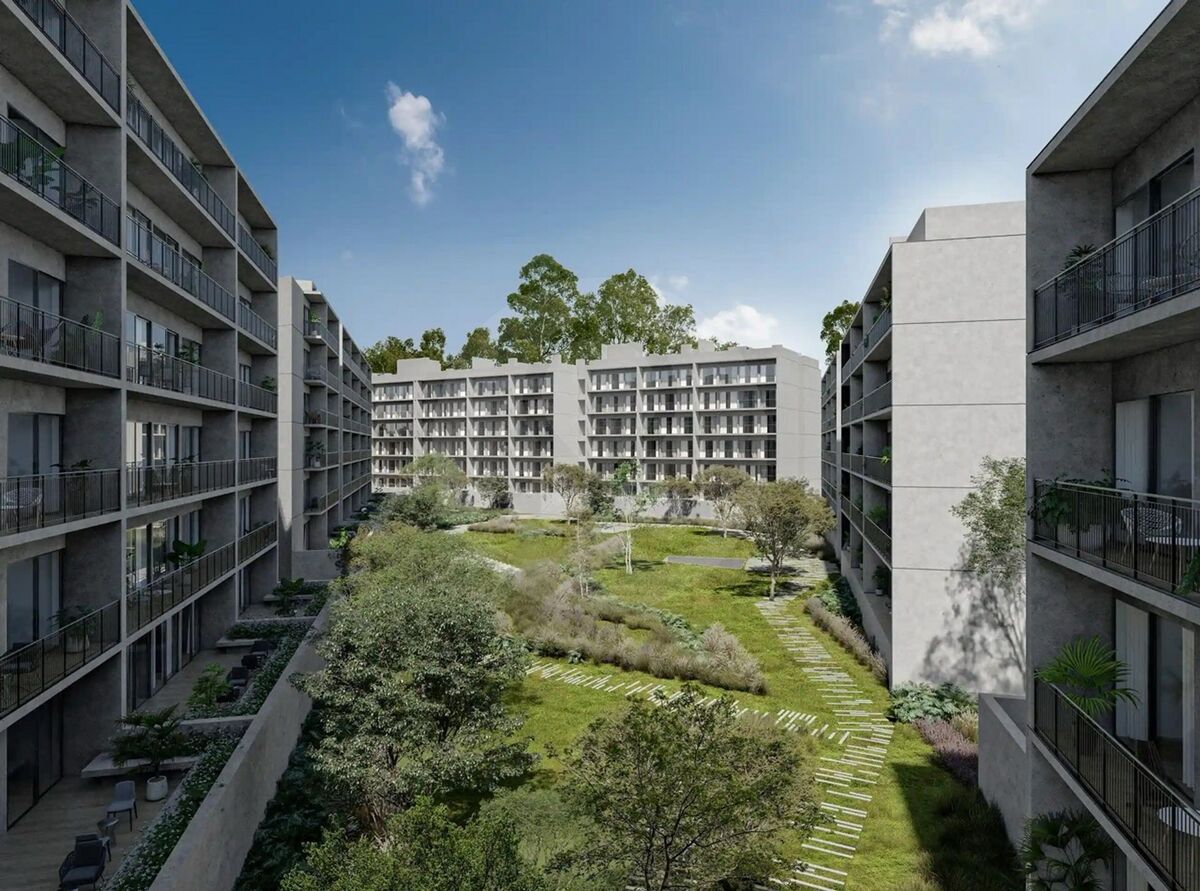 Qantera ofrece varias opciones de vivienda desde 65 m2, rodeando un parque central con acceso directo desde los propios departamentos, donde encontrarás canchas deportivas, juegos infantiles y hasta una zona para mascotas.