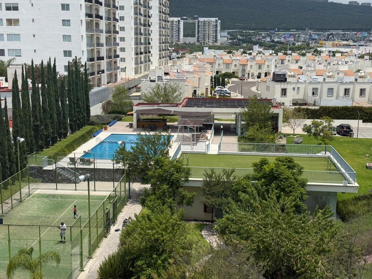 El condominio ofrece amenidades como alberca con terraza pool bar, asador, gimnasio, área de eventos, cancha de padel y área de juegos infantiles. Cuenta con 2 cajones de estacionamiento y estacionamiento de visitas.