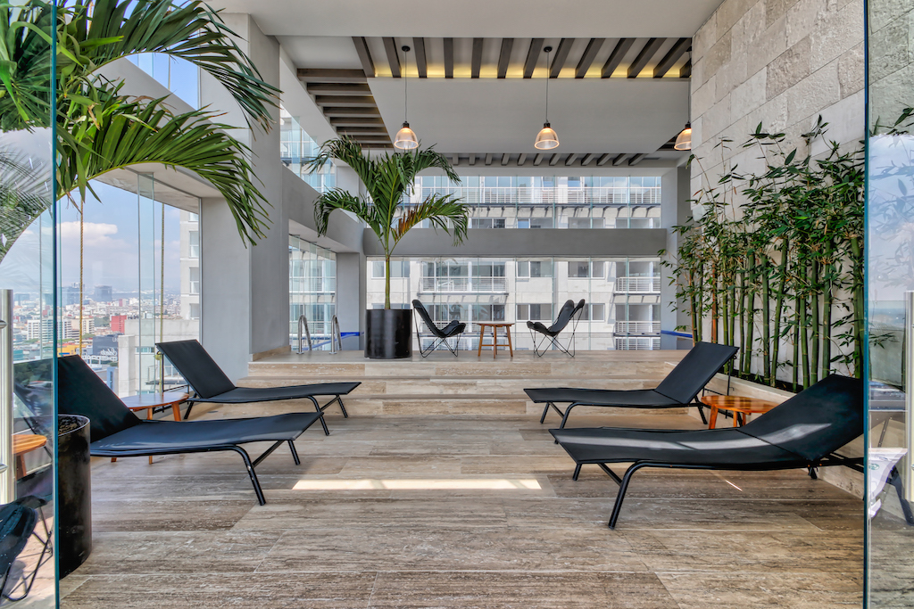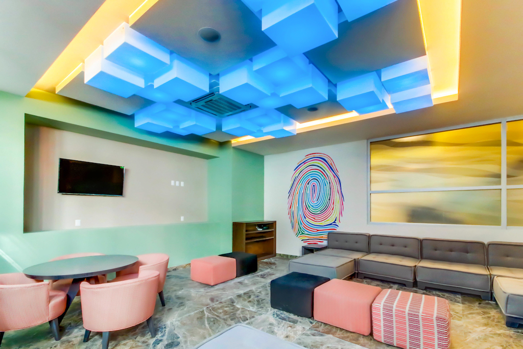 Jardín, alberca semiolímpica, alberca panorámica, chapoteadero, kids club, ludoteca, arcade, gimnasio cardio, gimnasio pesas, spinning, salón de yoga y pilates, boliche, sky cinema, cine, business center, salón inglés, lounge, salón de eventos, sauna, vapor, zona de jacuzzis y asadores.