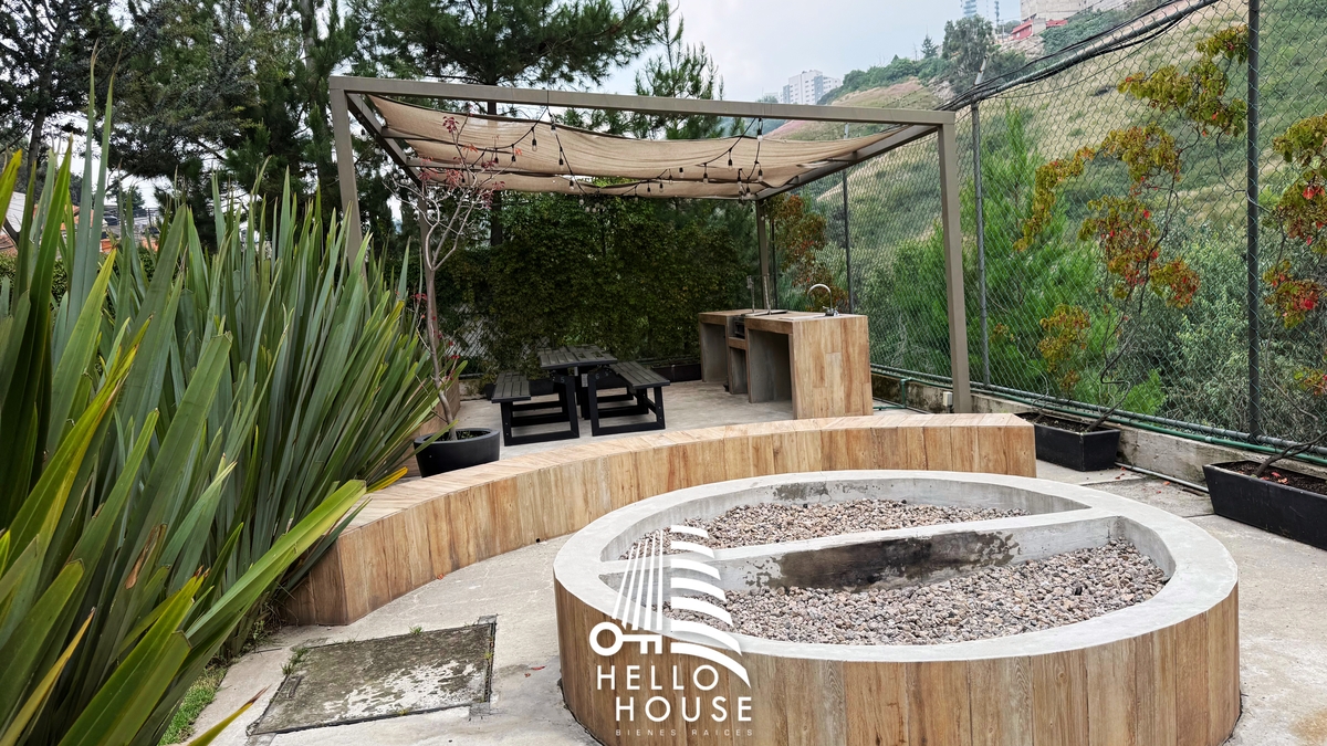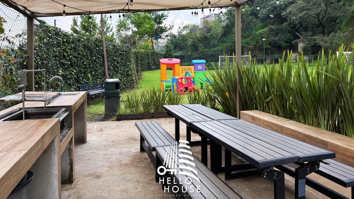 Cuenta con amenidades como Jardín, Ludoteca, Salón de usos Múltiples, Zona de Asadores, Pet Zone, juegos infantiles.