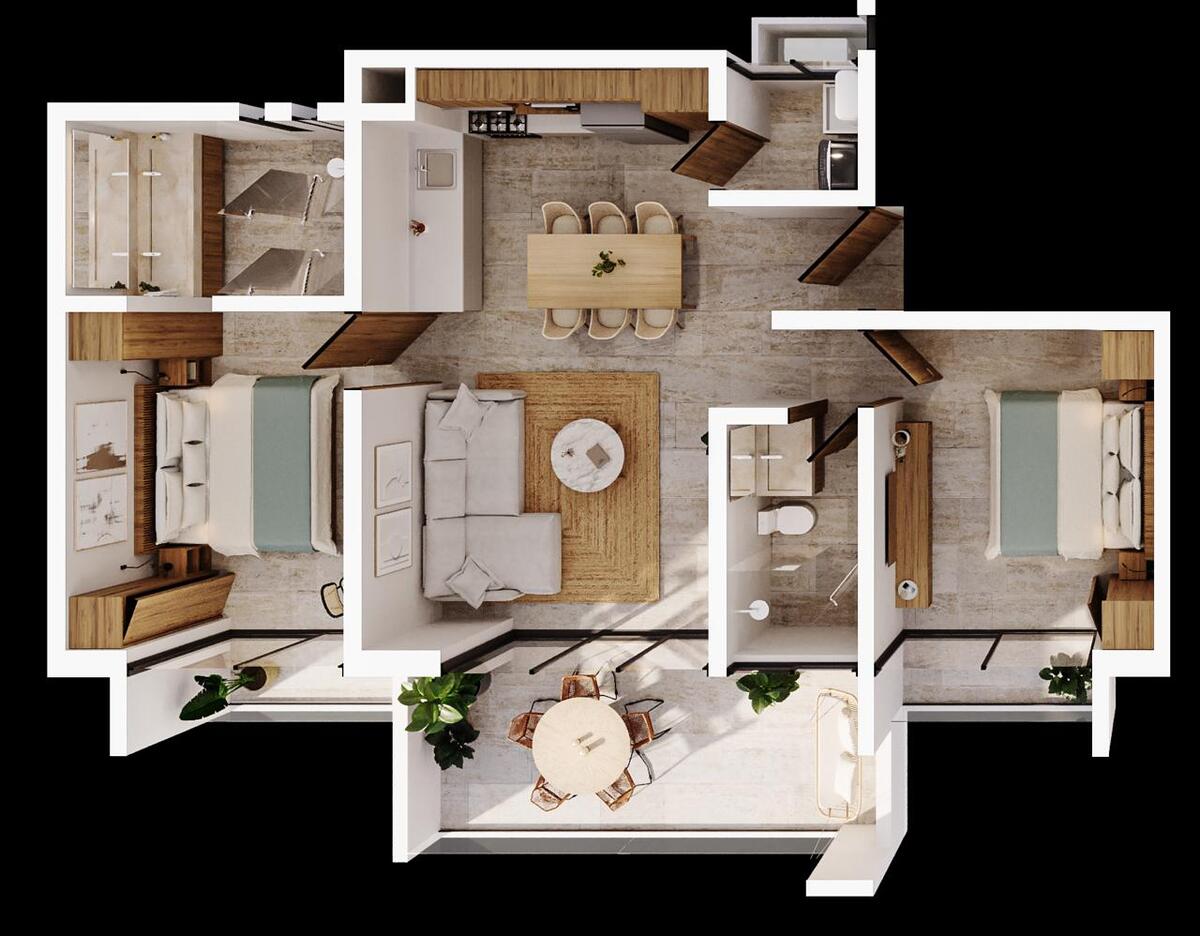 2 recámaras 🛏️ | 2 baños 🚿 | Cocina integral de lujo 🍽️ | Terraza amplia 🌅 | 98 m² totales.