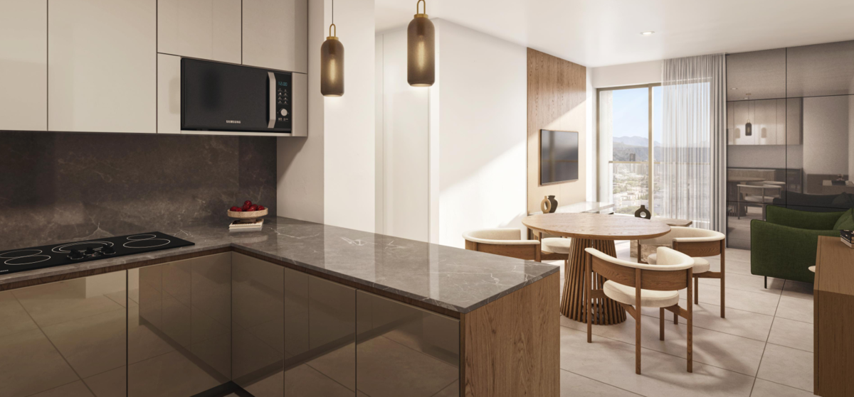Cuenta con exclusivas amenidades como pet park, salón de eventos, parque central, caseta de seguridad 24/7, asadores, fogateros, kids court, alberca, fitness room, playroom, work hub, lounge bar, suites para visitas, pet corner y lobby, entre otros.