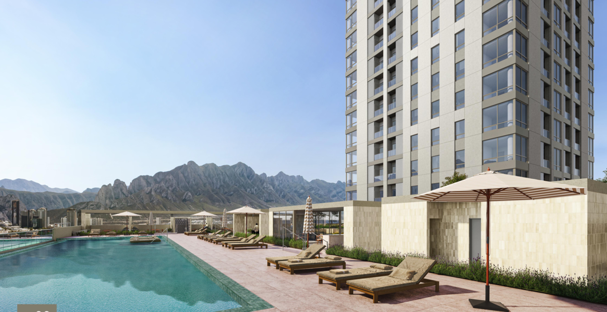 En desarrollo de 2 torres de 20 niveles con un total de 225 departamentos de 1,2 y 3 recámaras más flex y 4 niveles de estacionamiento.