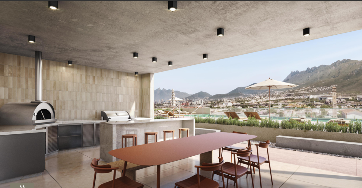 Cuenta con exclusivas amenidades como pet park, salón de eventos, parque central, caseta de seguridad 24/7, asadores, fogateros, kids court, alberca, fitness room, playroom, work hub, lounge bar, suites para visitas, pet corner y lobby, entre otros.