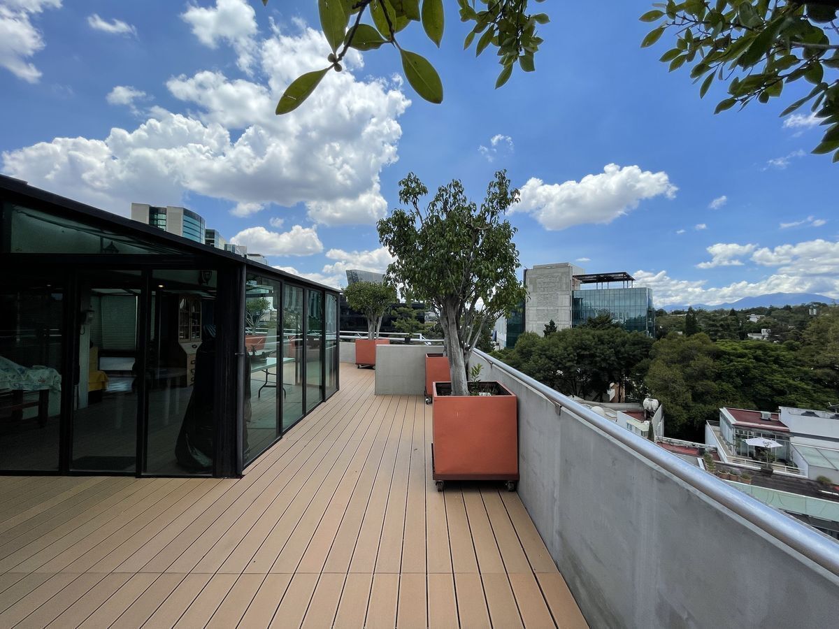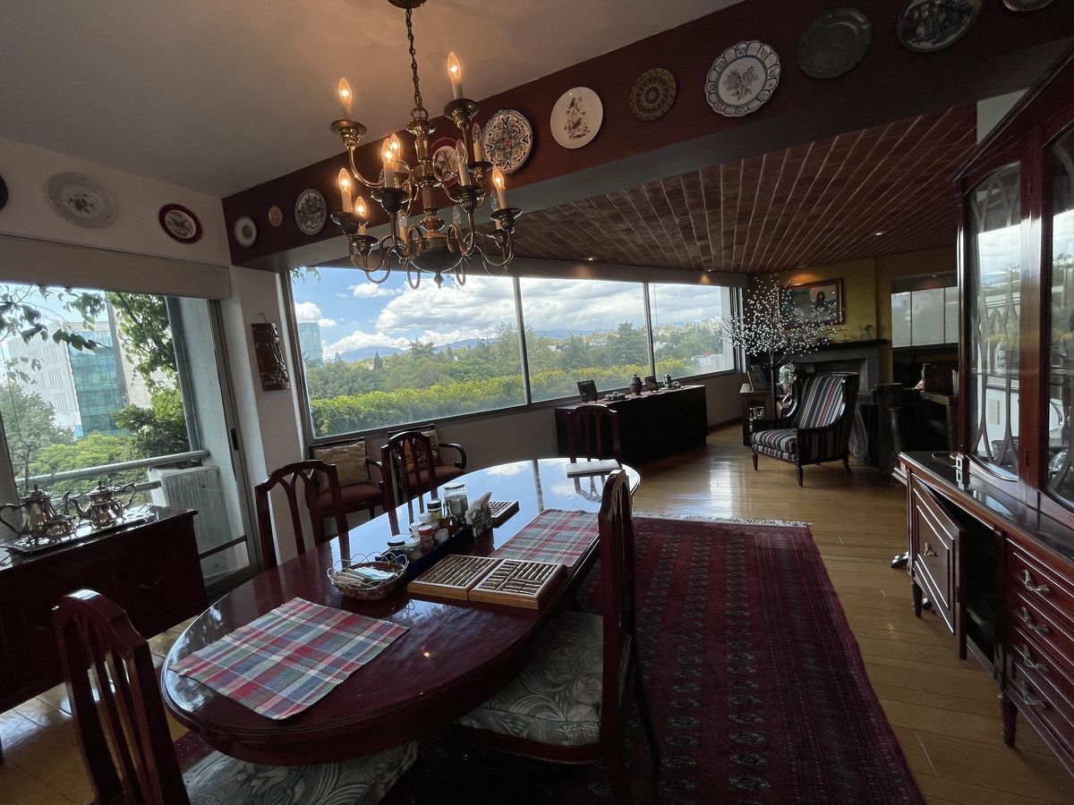 Hermoso Pent-house estilo colonial mexicano de dos niveles en la zona más céntrica de las lomas de Chapultepec, a 5 minutos de Polanco, a 5 minutos de Av. Reforma. En el primer nivel cuenta con 2 recamaras, 2 baños completos y 1 medio baño para visitas, en el segundo nivel cuenta con la recamara principal, baño completo y con una increíble vista. Ahí mismo se tiene acceso a su propio roof garden donde podrás disfrutar de increíble vista y disfrutando de tus propios arboles y camastros. Se tienen 5 lugares marcados para automóviles en el primer nivel de estacionamiento. Amplia cocina integral, área de lavado, amplia bodega ubicada en el sótano 1, elevador que se detiene únicamente por llave personal y cámara de circuito cerrado, Vigilancia 24 / 7. Mantenimiento $ 8,000 Se aceptan mascotas pequeñas en el condominio.