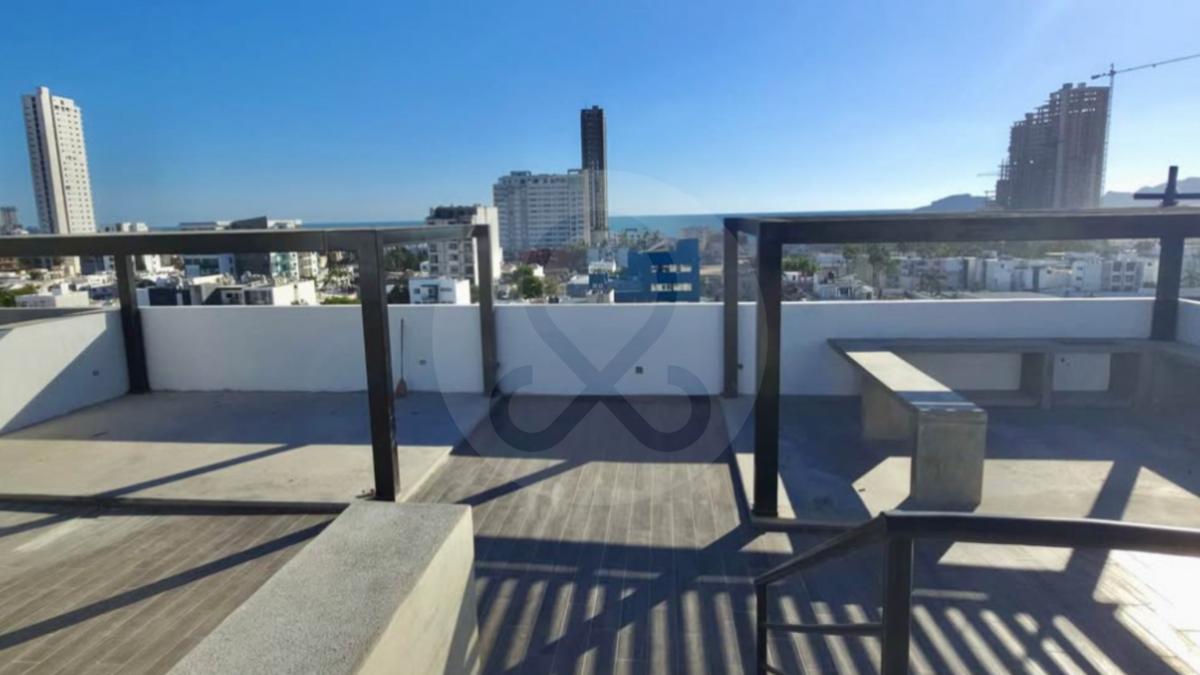 El desarrollo ofrece alberca, gimnasio, comedor, roof garden con vista panorámica y acceso controlado. Su ubicación cercana al malecón y zonas turísticas lo convierte en una opción atractiva tanto para habitar como para rentar.