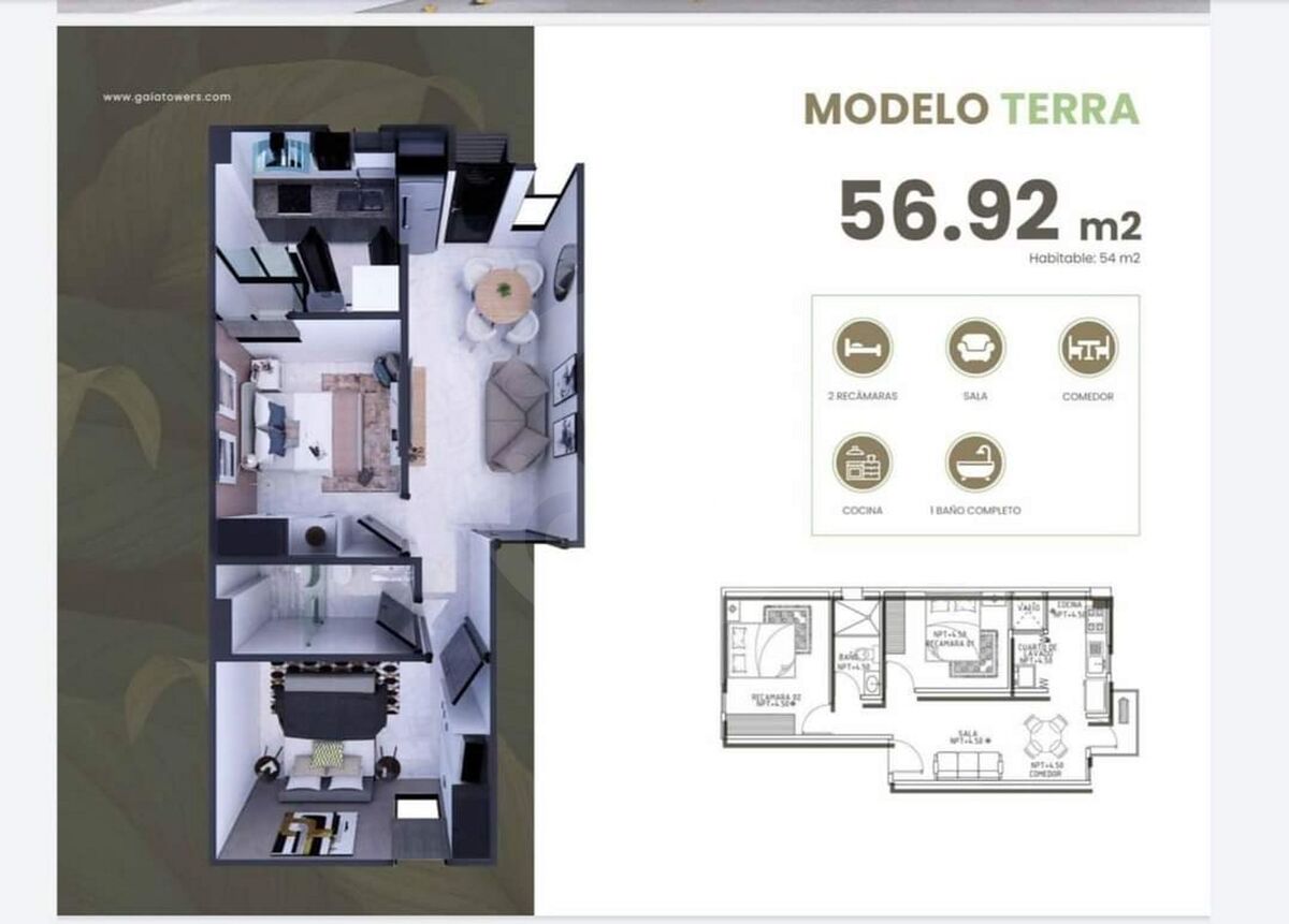 Ubicado en el desarrollo Gaia Towers en Mazatlán, el departamento Modelo Terra de 57.71 m² ofrece una excelente oportunidad de inversión inmobiliaria.