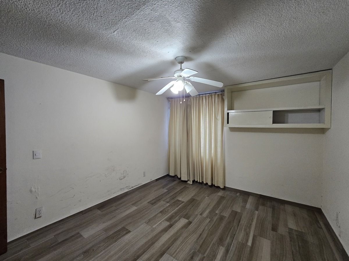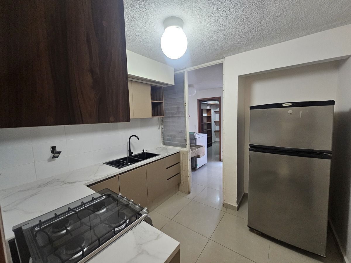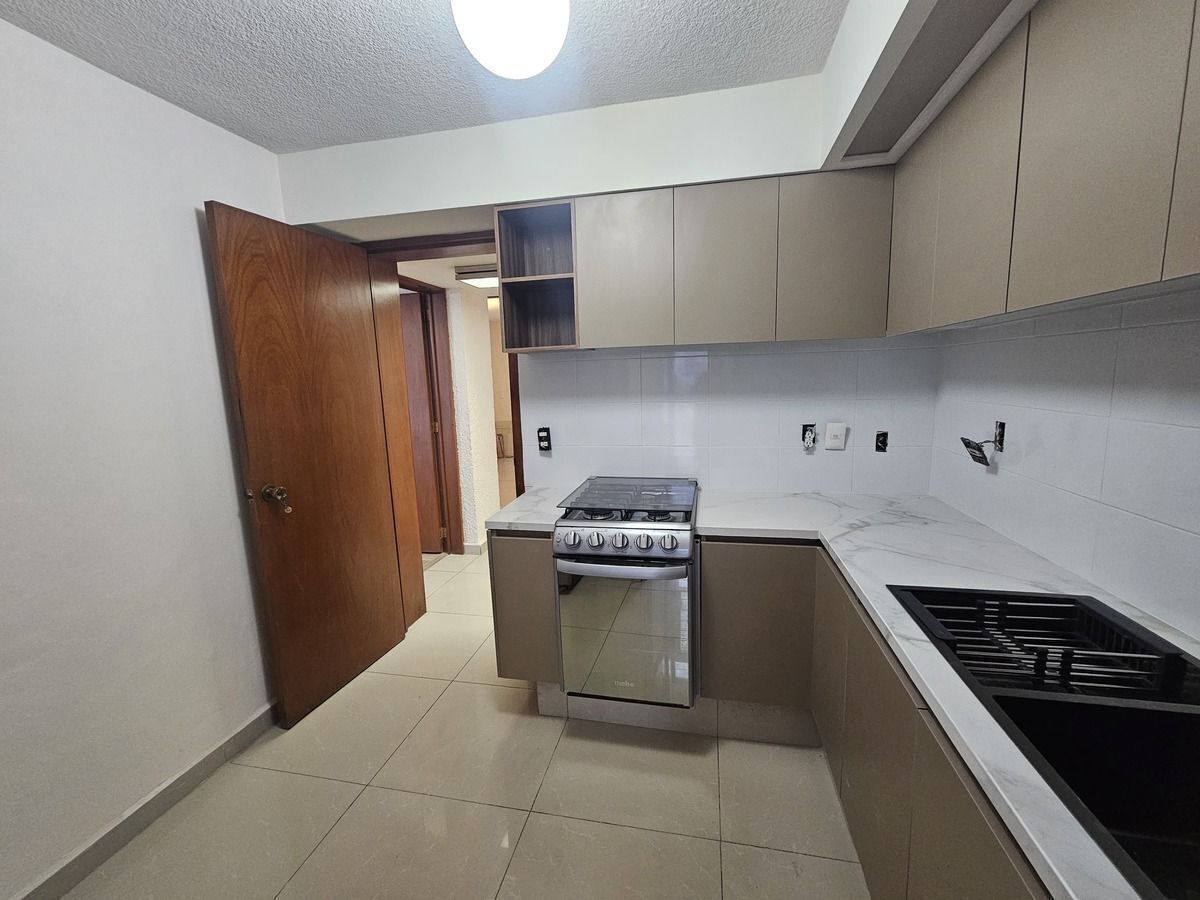 El Departamento cuenta con Cochera techada para un auto, Sala, Comedor, Cocina integral, Área de servicio con Alacena y Baño completo de servicio, Recámara principal con clóset y Baño completo y 2 Recámaras secundarias con clóset cada una y un Baño completo compartido.