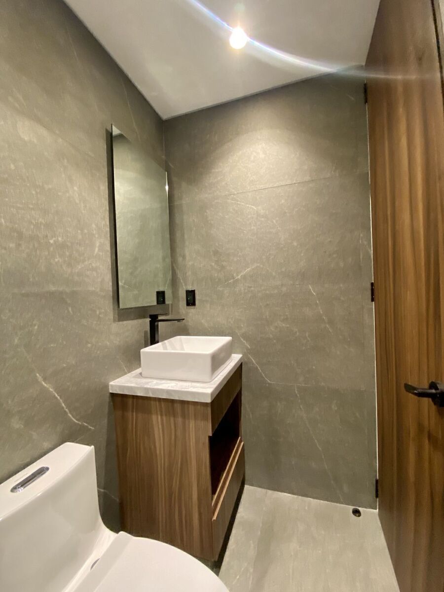 Acabados de lujo: Disfruta de pisos de madera importadas en todas las habitaciones, brindando una sofisticada sensación de confort y pisos de piedra natural en la estancia.