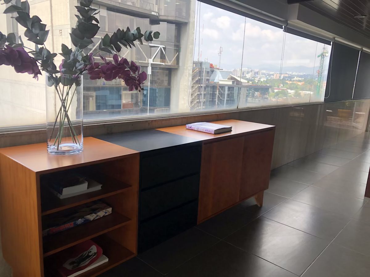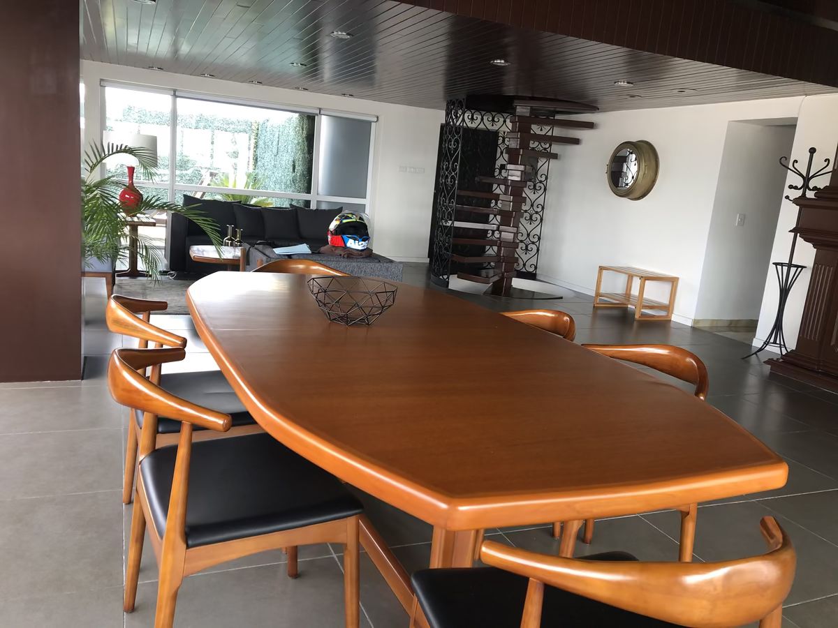 En planta alta, dos terrazas muy amplias. 2 baños completos. Cocineta, podrían ser dos lofts independientes. 2 estacionamientos. Área de lavado. 2 cuartos de servicio. Elevador de servicio.